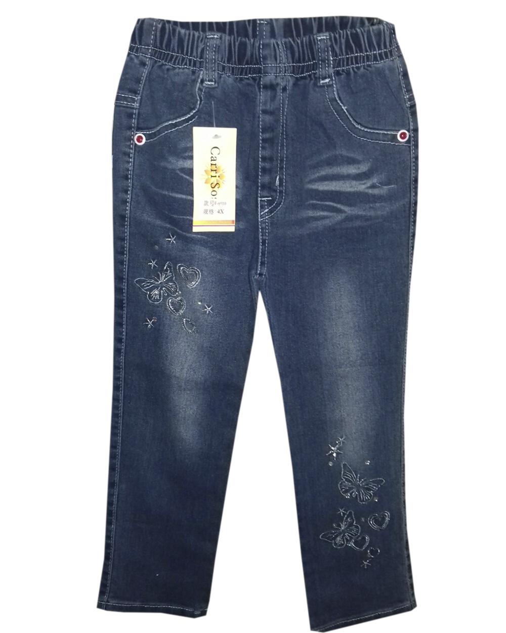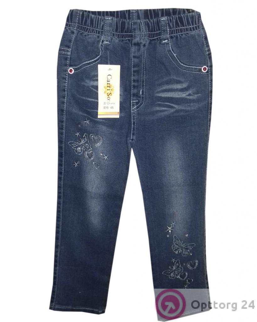 Джинсы детские с вышивкой бабочек на обеих штанинах оптом