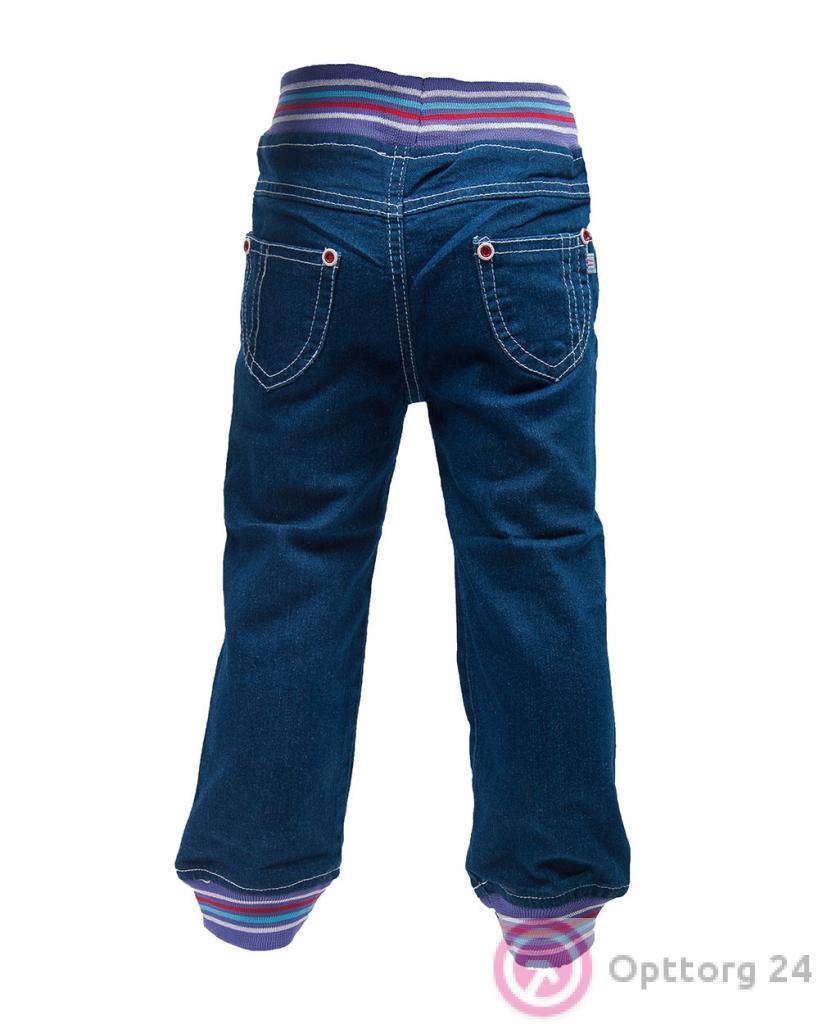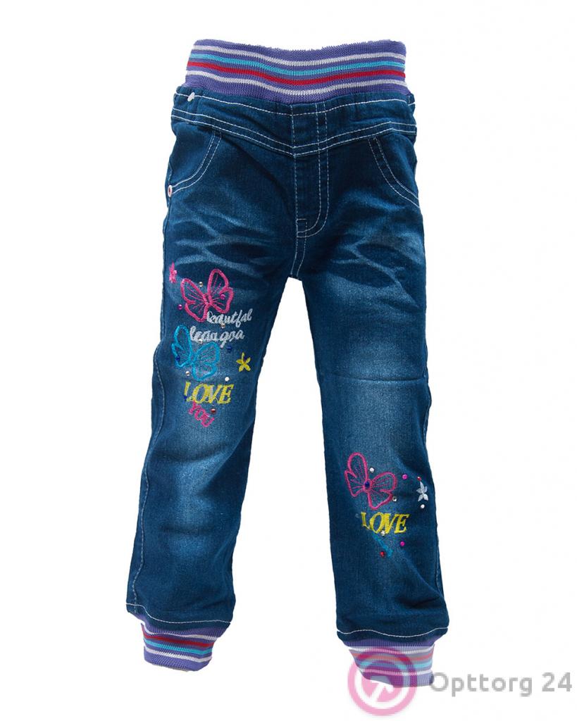 Джинсы для девочки на резинке с аппликацией "бабочки" оптом