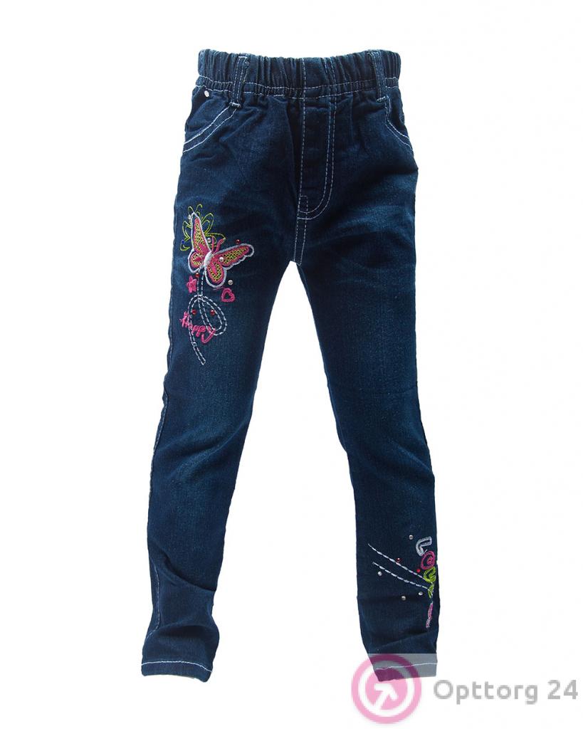 Джинсы для девочки на резинке с яркой аппликацией оптом