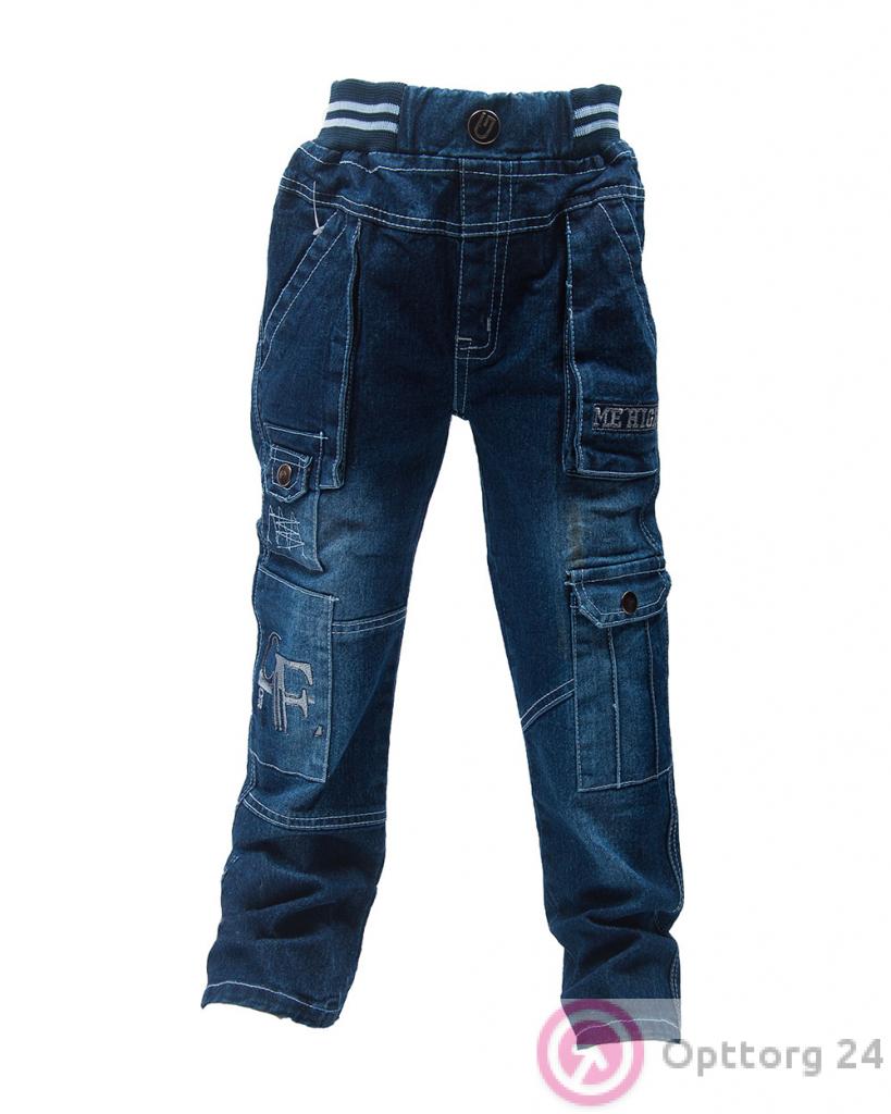 Джинсы для мальчика на резинке с множеством карманов оптом