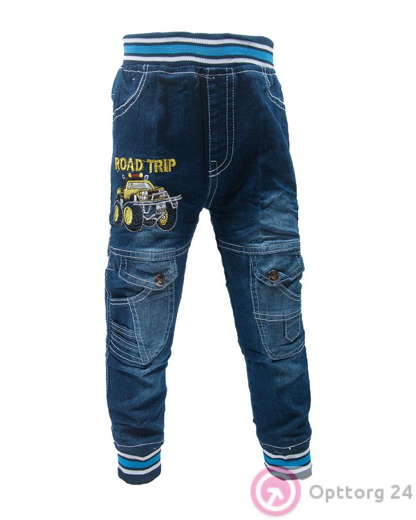 Джинсы для мальчика с резинками и аппликацией "Трактора" оптом