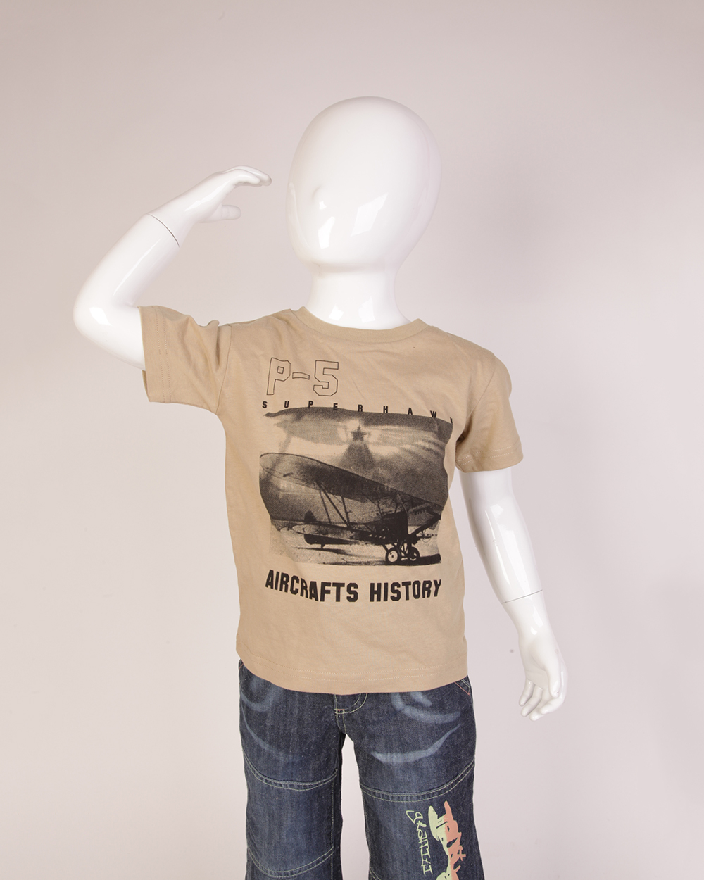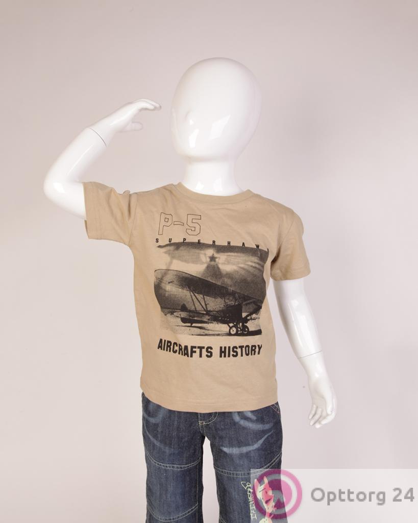 Футболка детская бежевая с аэропланом оптом