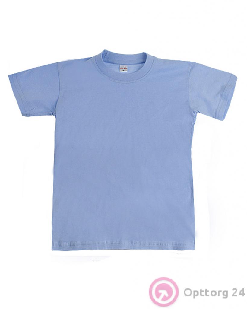 Детская футболка голубого цвета, выполнена из натурального хлопка. Модель без застежек, классический вариант футболки.