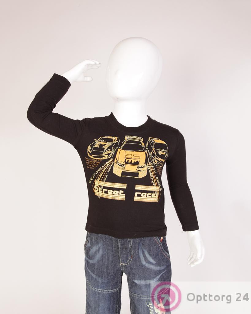 Футболка детская с длинным рукавом черная с машиной оптом