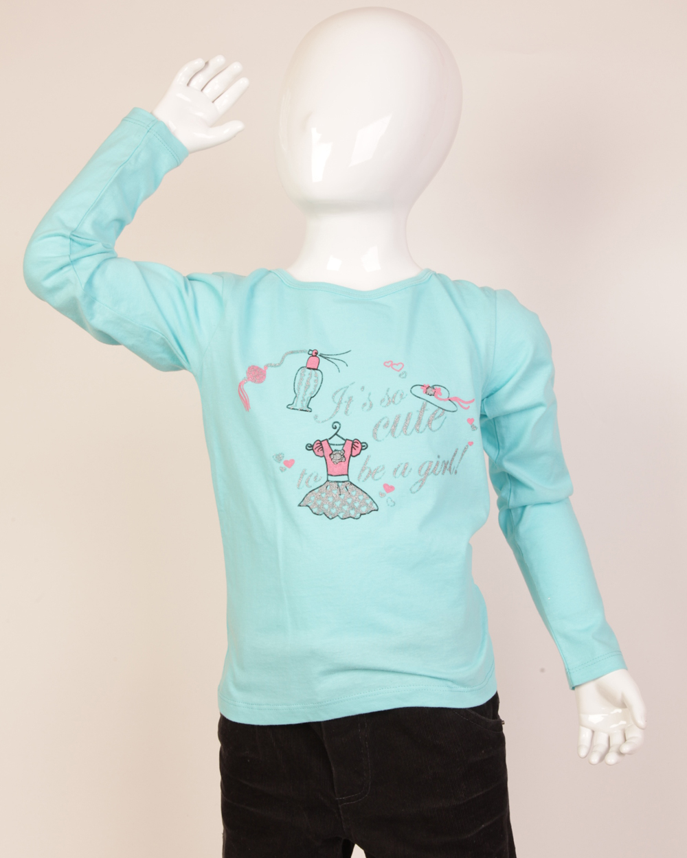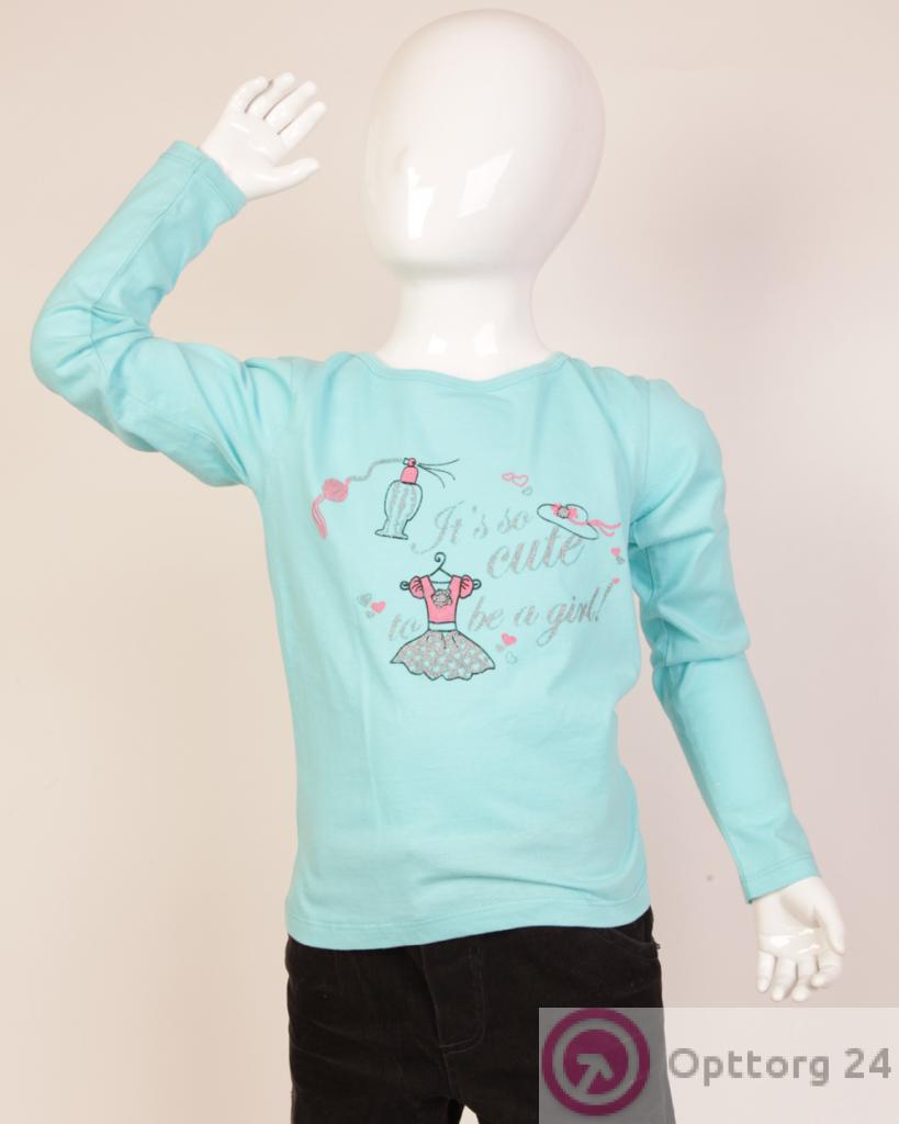 Футболка детская с длинным рукавом голубая с принтом оптом