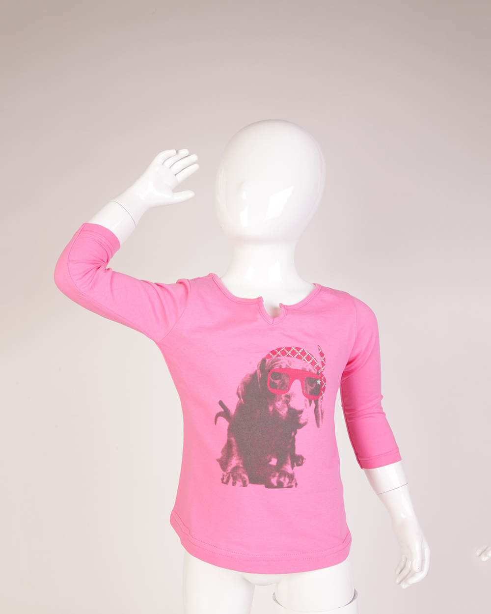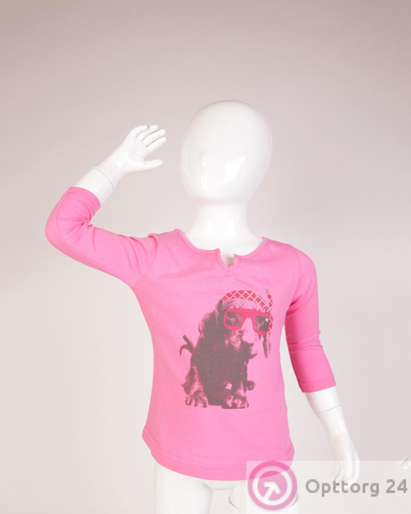 Футболка детская с длинным рукавом розовая с собакой оптом