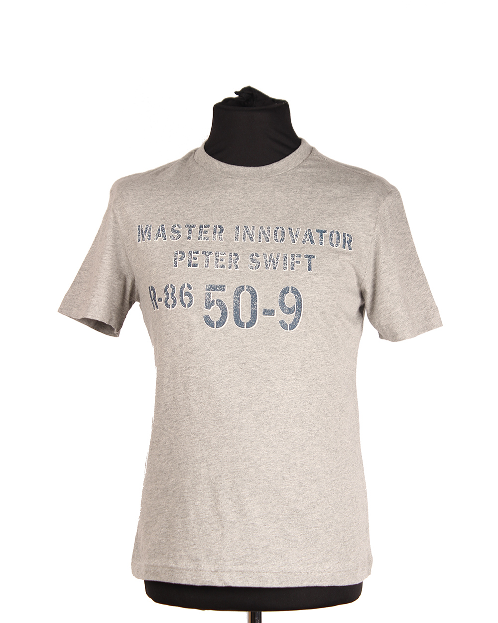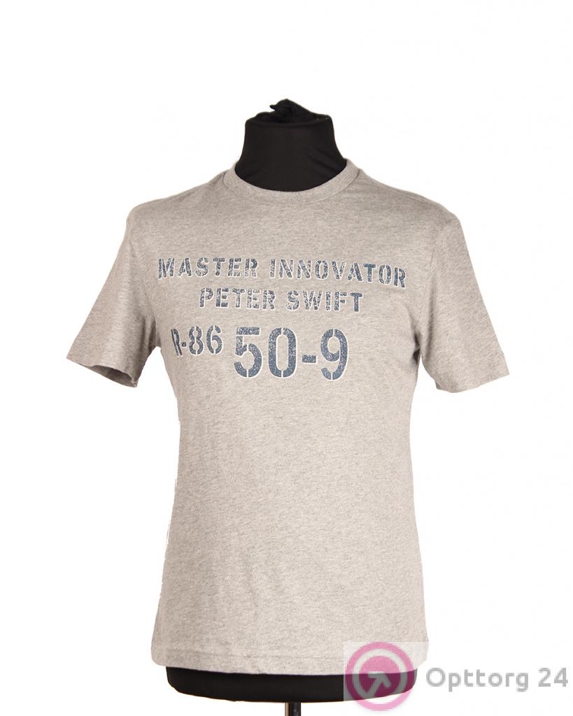 Мужская футболка бежевого цвета на короткий рукав. На груди нанесен принт-надпись. Футболка прекрасно подойдет для каждодневной носки. Сток Англия.