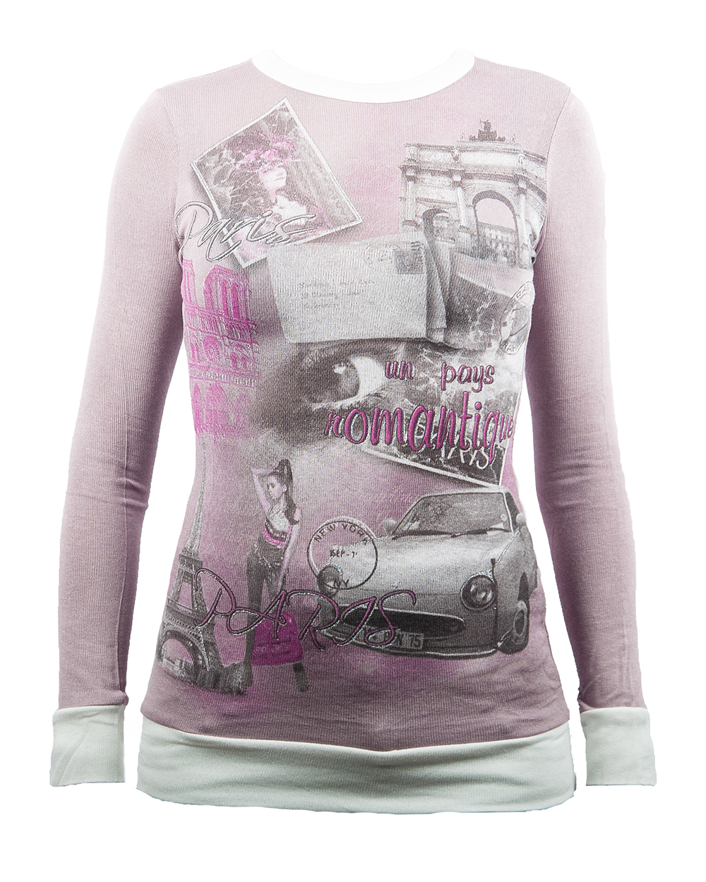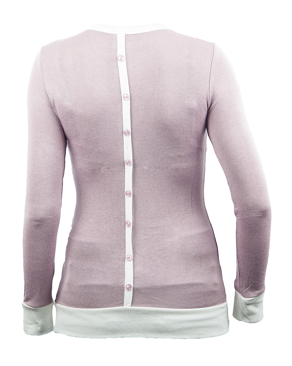 Стильный джемпер с округлым верезом и длинными рукавами. Модный принт, белая отделка рукавов, низа и горловины. Ложная застежка на пуговицы на спине. Подходит и для ежедневной носки, и для встреч с друзьями.