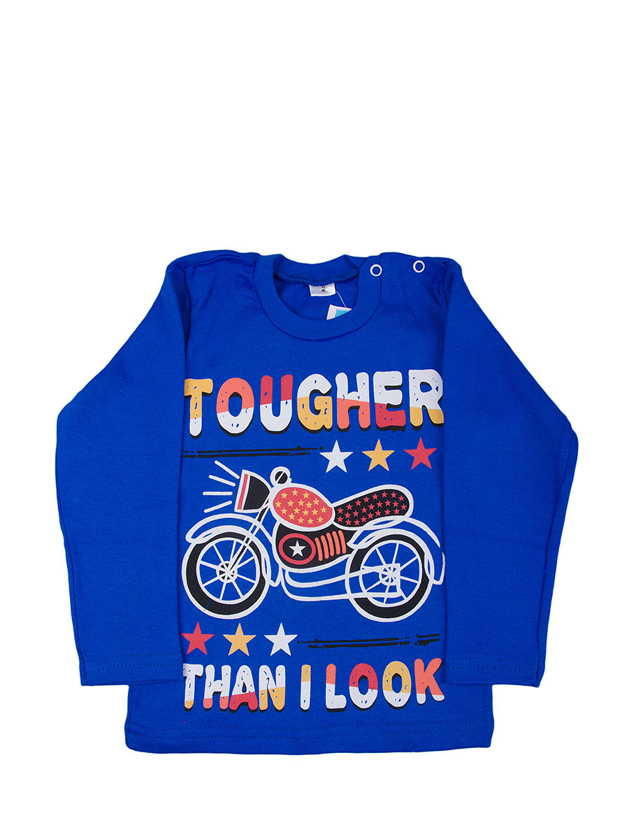 Детская кофта из хорошего материала с пуговицами на левом плече и принтом