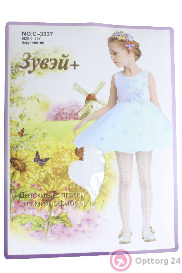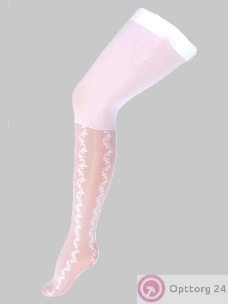Колготы детские белого цвета с рисунком на нижней части изделия. оптом