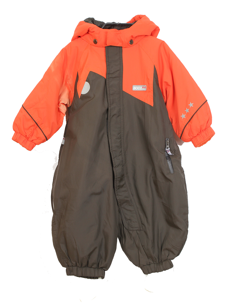 Детский комбинезон для девочки. Оранжевого цвета с коричневыми вставками.