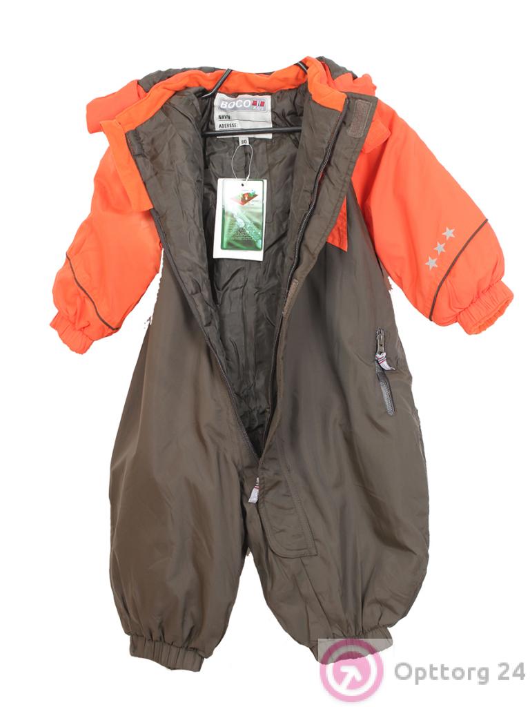 Комбинезон детский для девочки оранжевого цвета с коричневыми вставками оптом