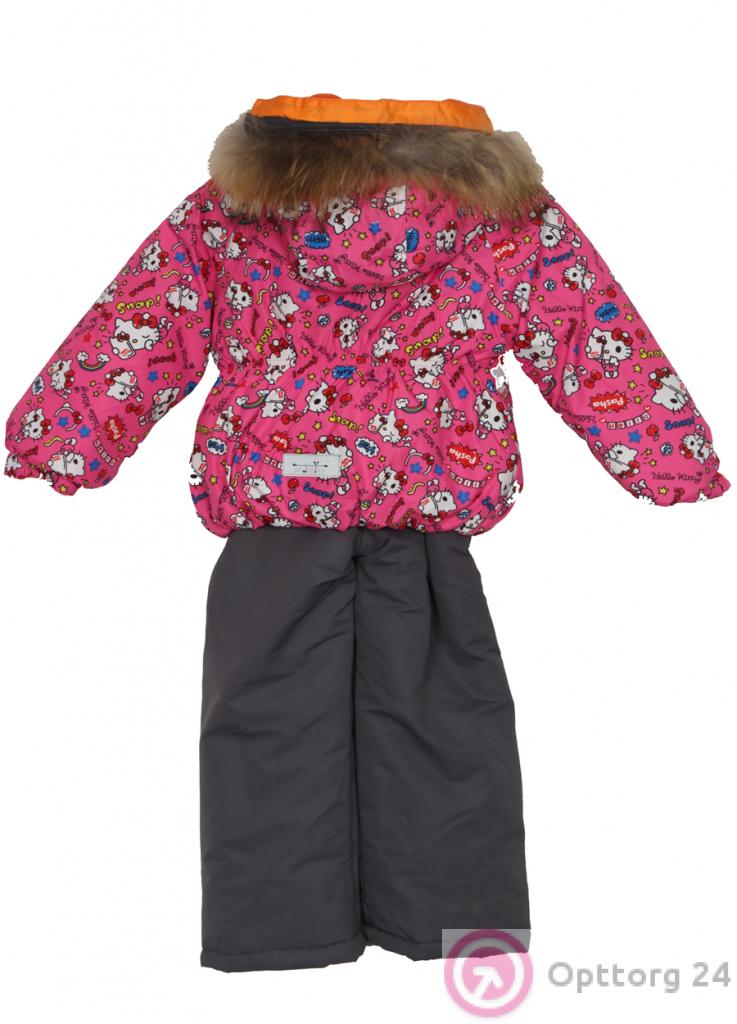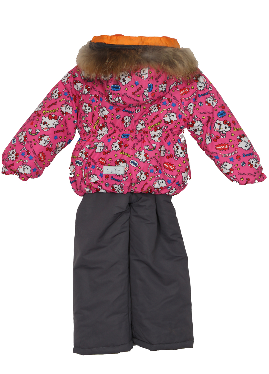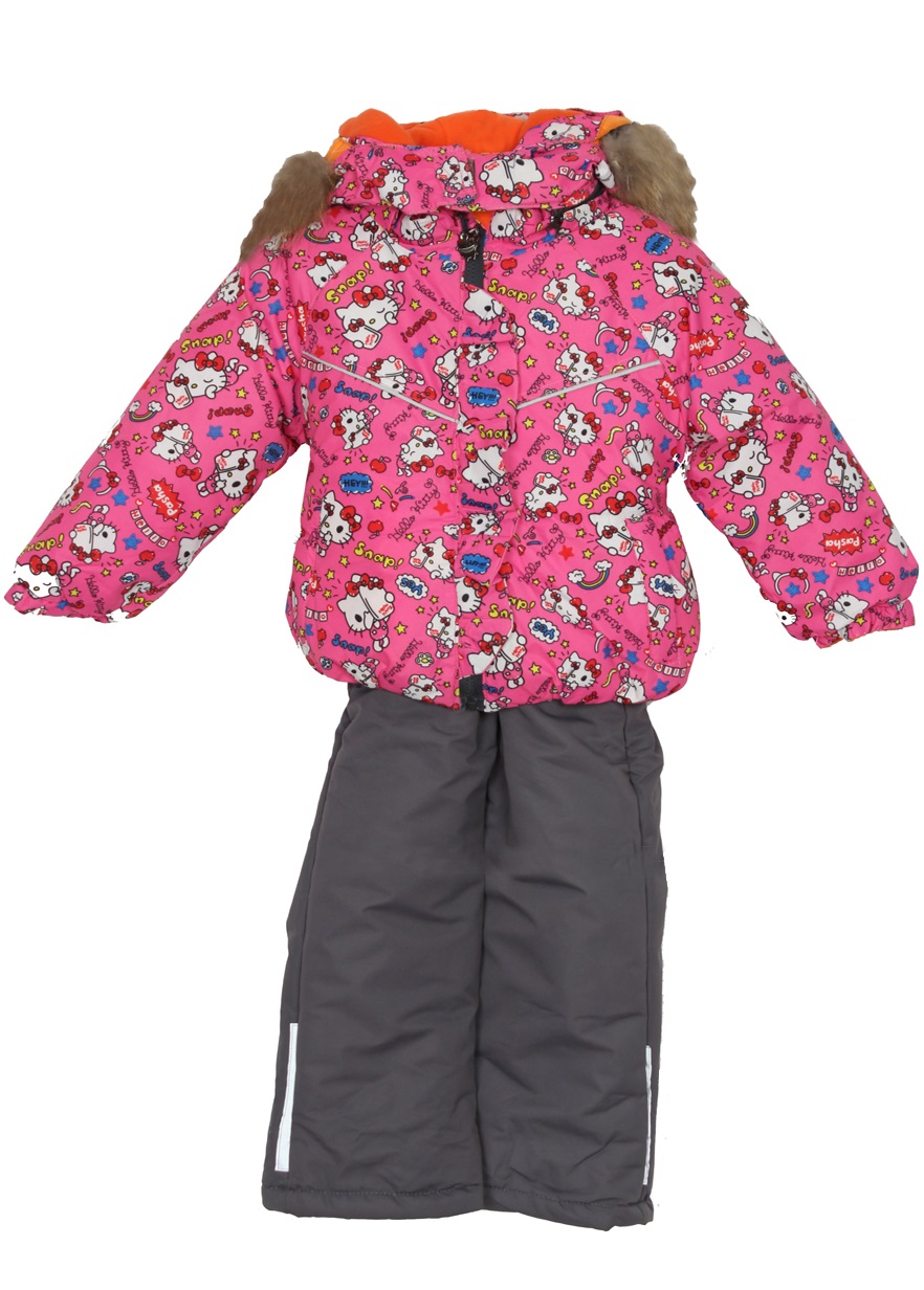 Теплый и удобный, стильный и практичный детский комбинезон. Куртка розового цвета украшена принтами и имеет капюшон с мехом. Штаны с резинками внизу, оснащены светоотражателями, которые повышают безопасность в темное время суток