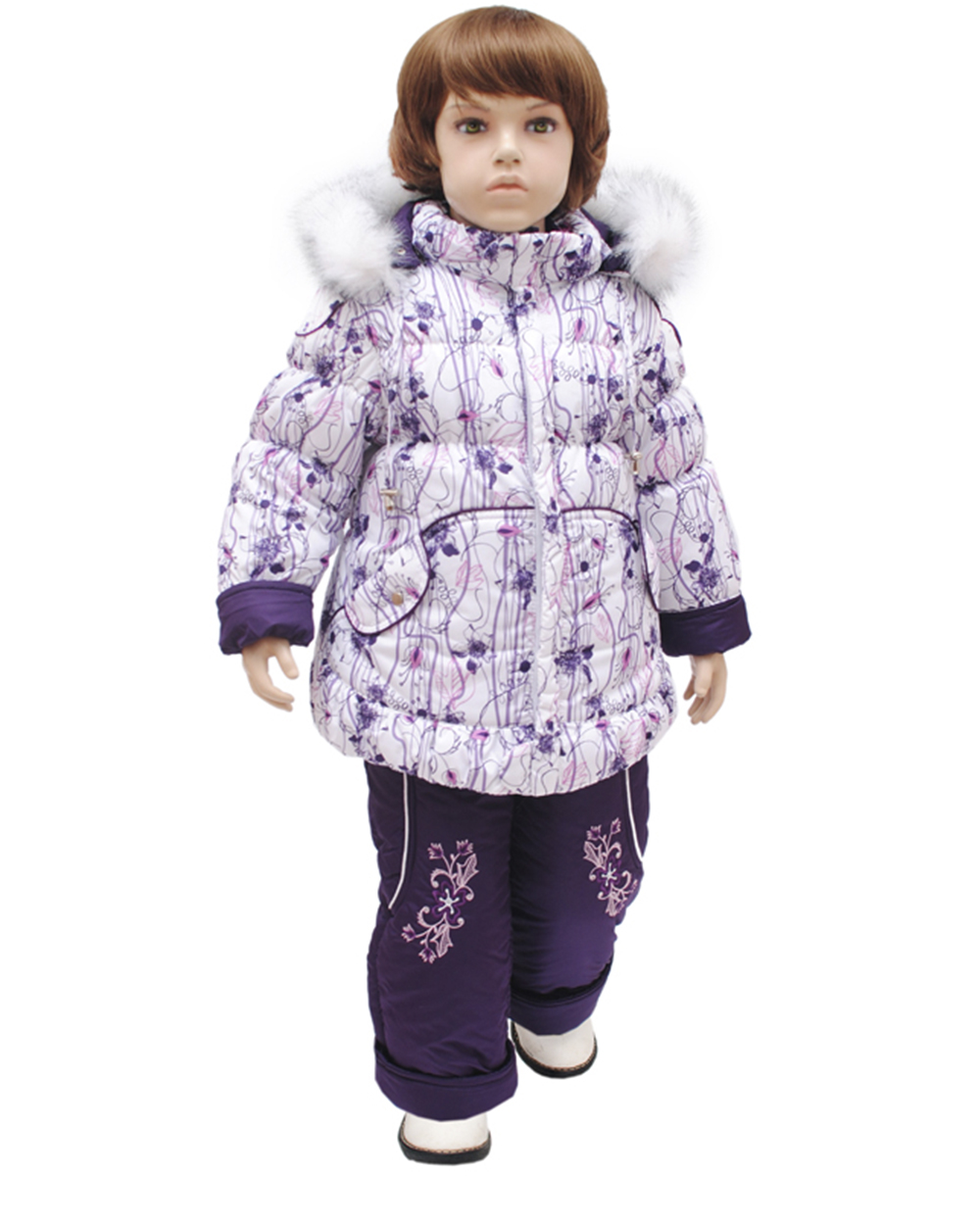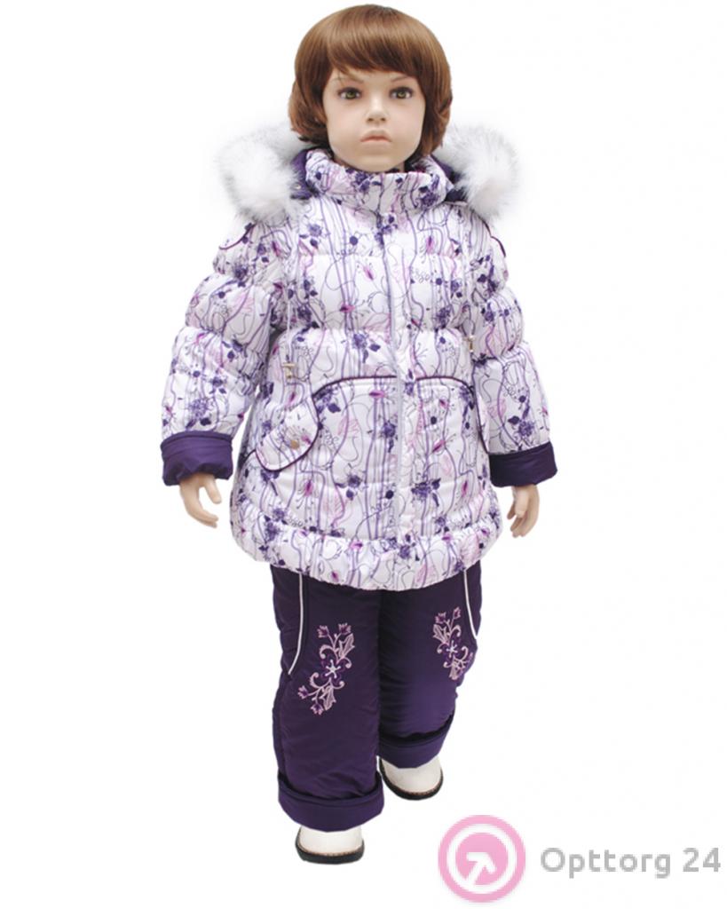 Комплект для девочек зимний с цветочным принтом фиолетового цвета оптом