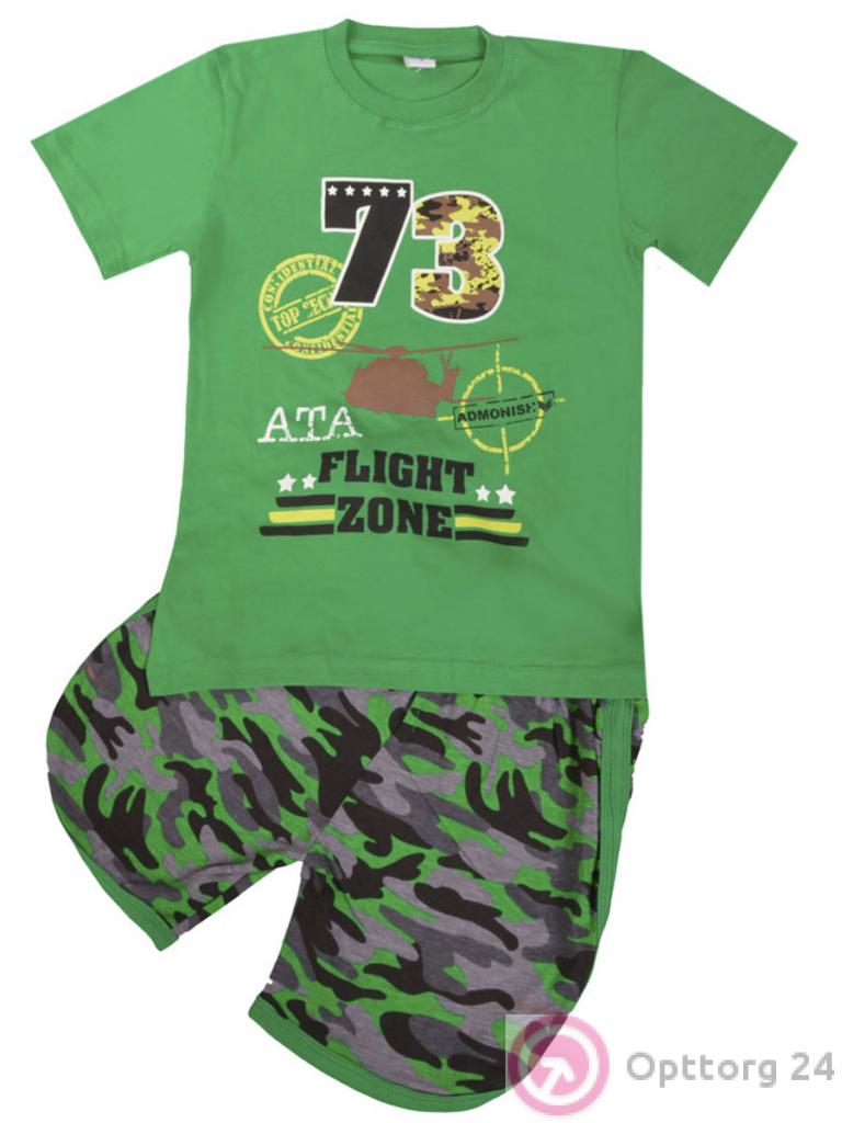 Комплект для мальчика футболка+ шорты зеленого цвета с принтом. оптом