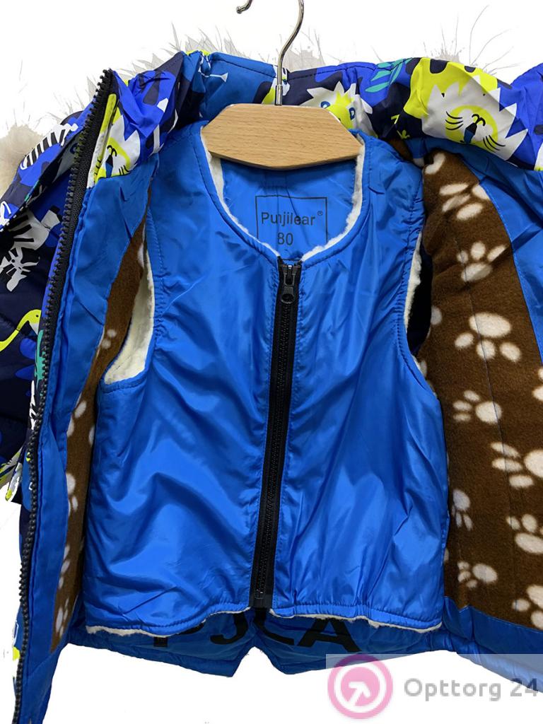 Комплект зимний для мальчика 3 в 1: куртка, меховой жилет, комбинезон оптом