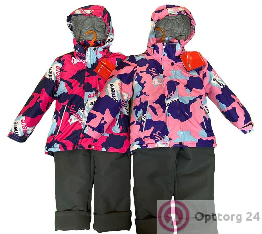 Костюм детский демисезонный комбинезон и куртка для девочки необычной расцветки оптом
