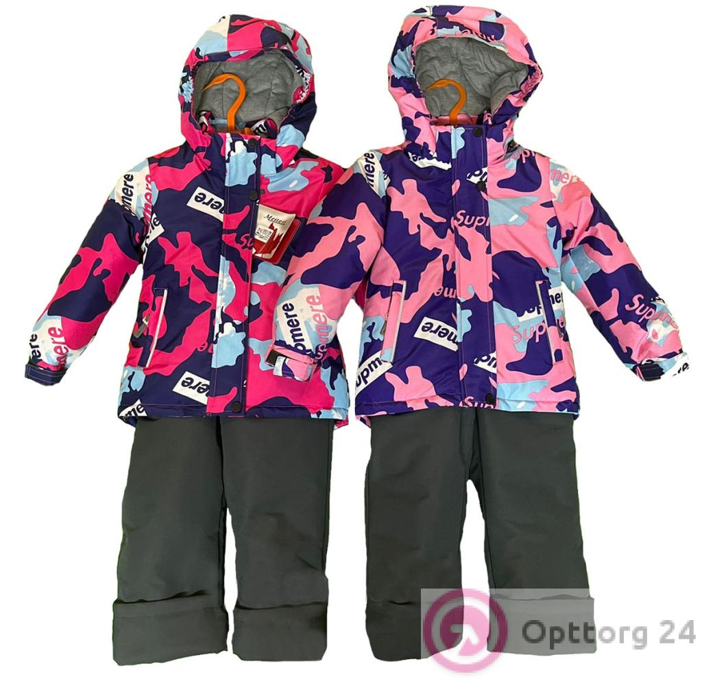 Костюм детский демисезонный комбинезон и куртка для девочки с принтом клякс оптом