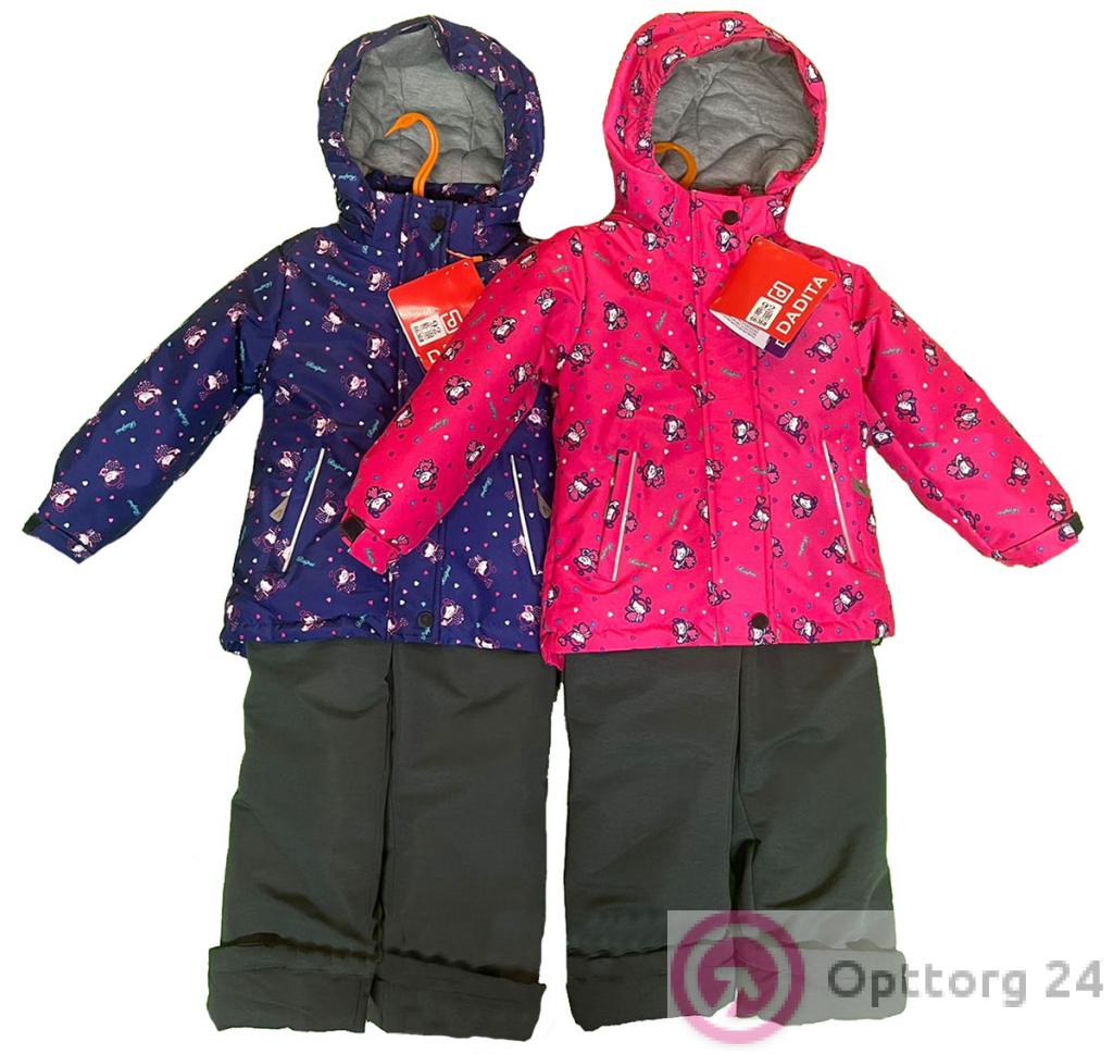 Костюм детский демисезонный комбинезон и куртка для девочки с принтом кукол оптом