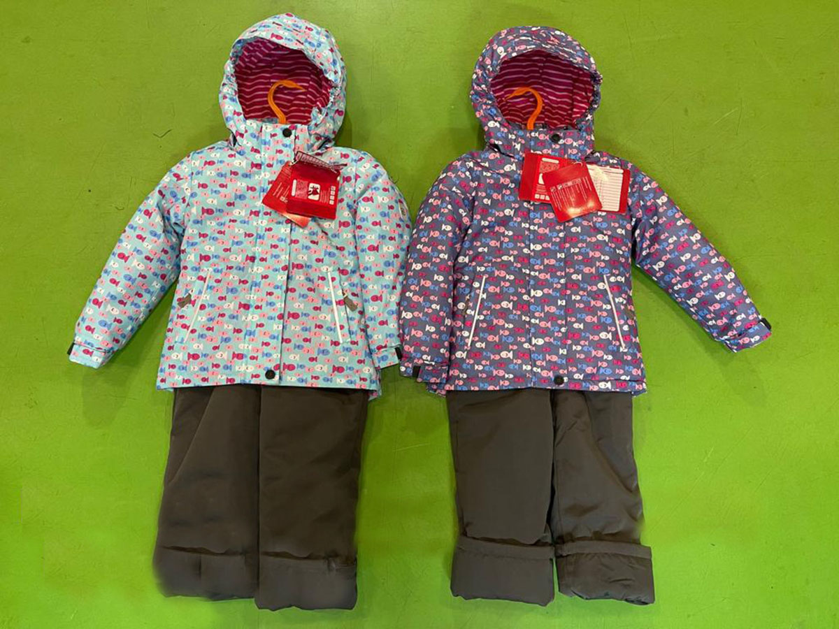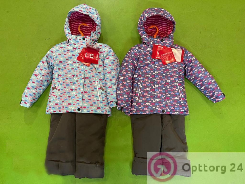 Костюм детский демисезонный куртка и комбинезон для девочки с принтом рыб оптом