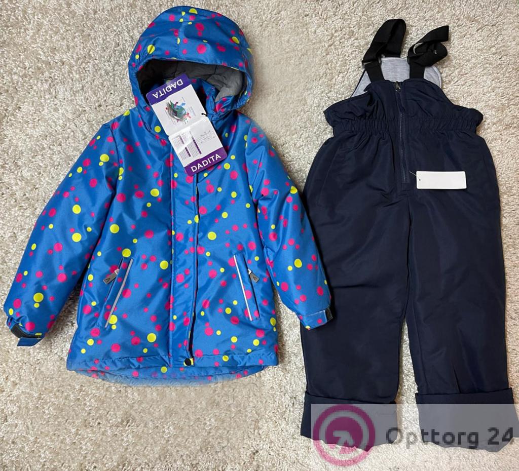 Костюм детский демисезонный куртка и комбинезон для девочки в горошек оптом