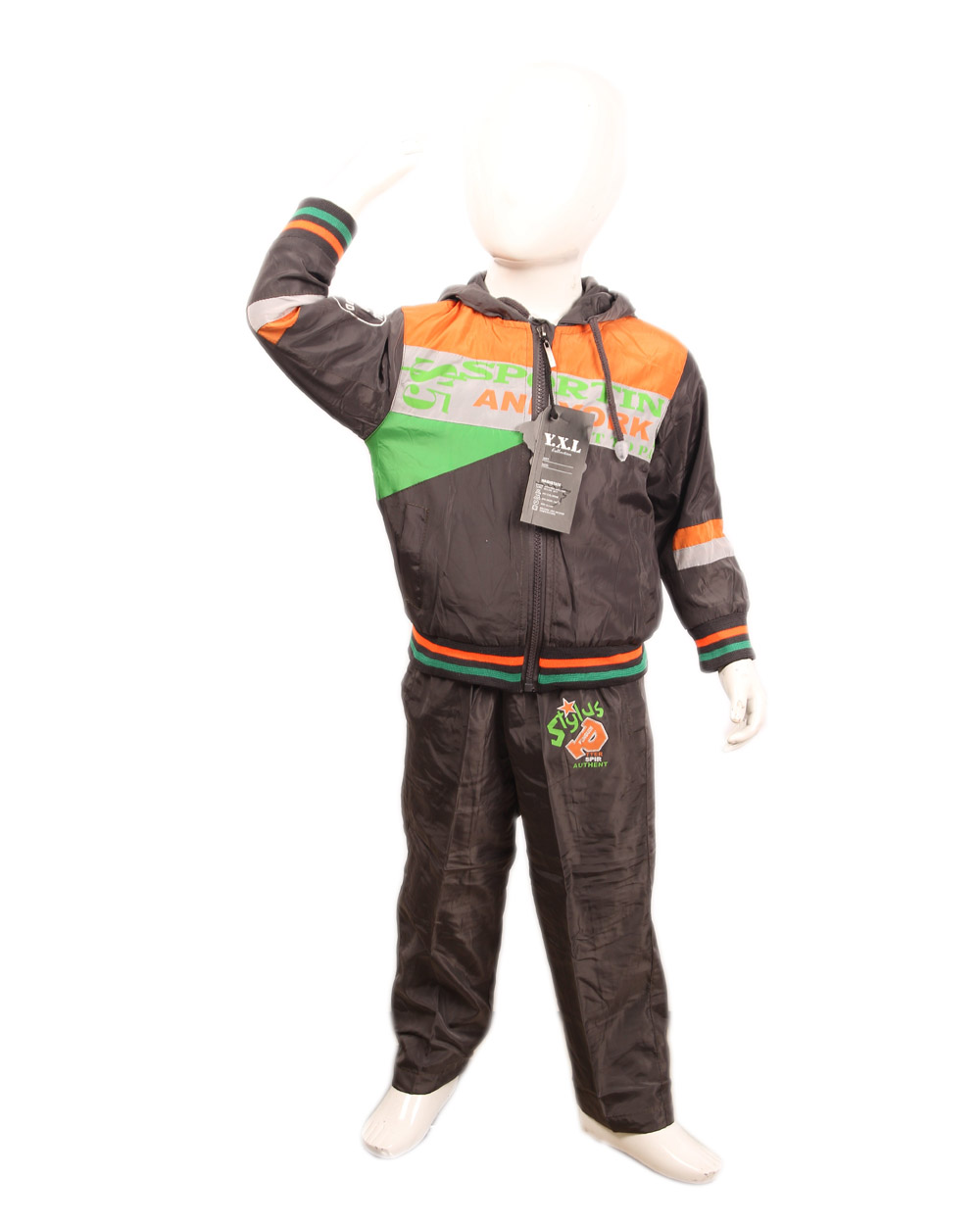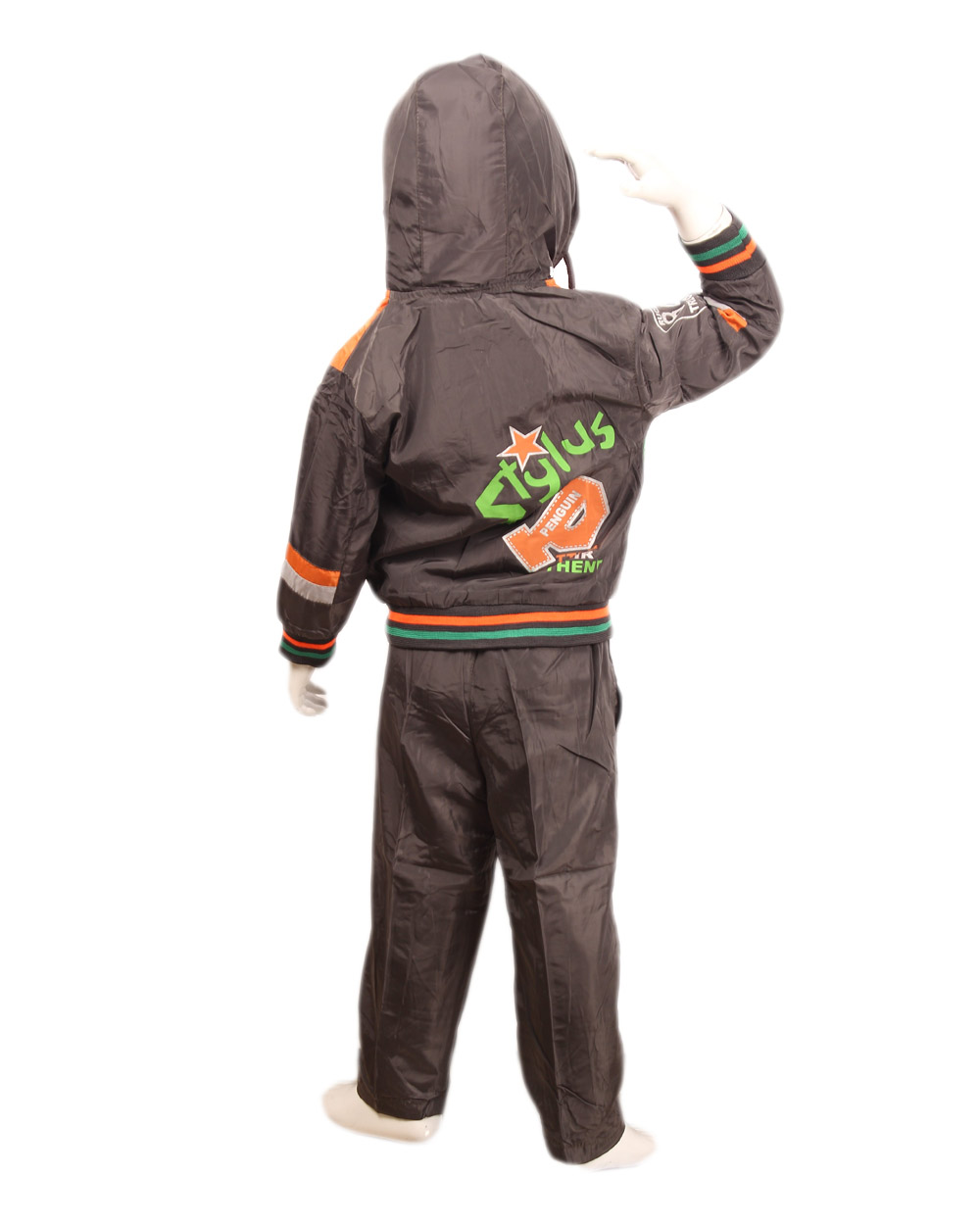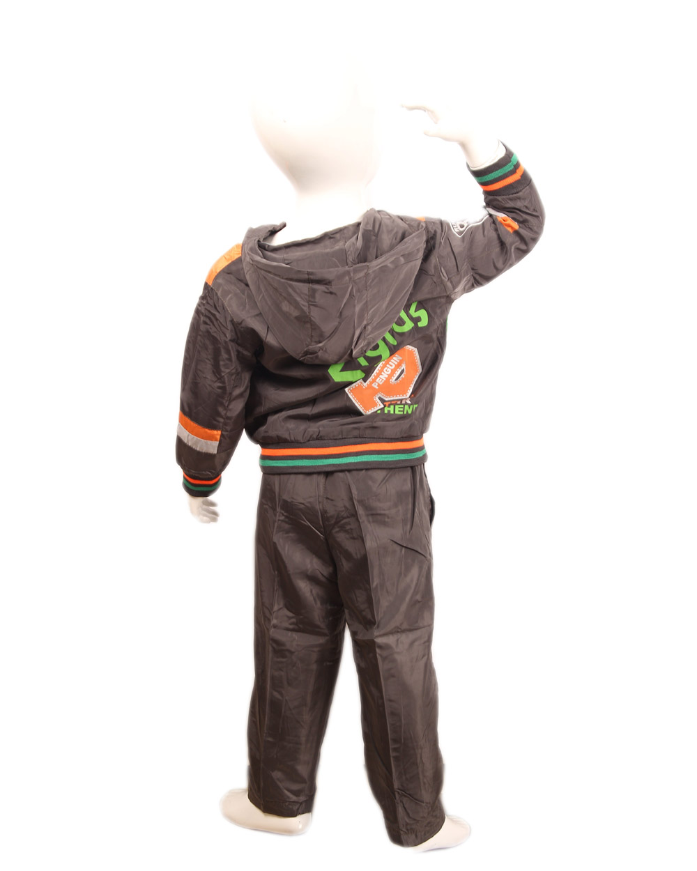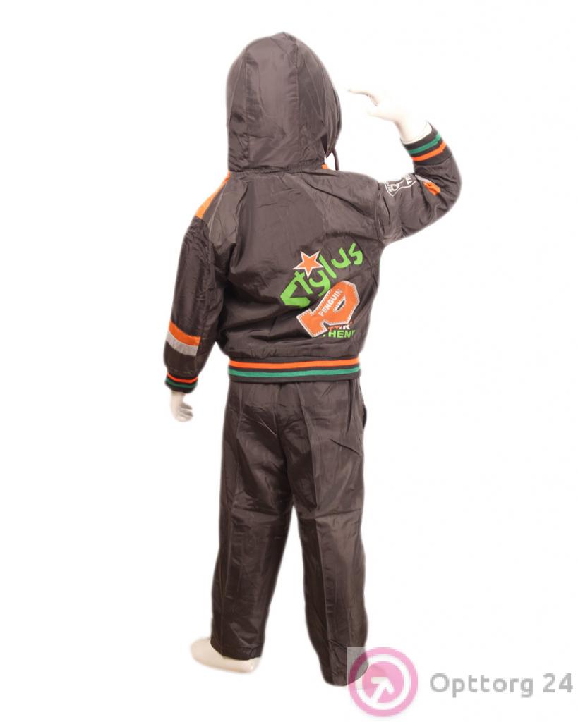 Красивый костюм из ветровочной ткани для прогулок на свежем воздухе. Куртка и штаны коричневого цвета с разноцветными вставками и принтом. Застегивается на молнию, капюшон несъемный. Отличное качество пошива и ткани.
