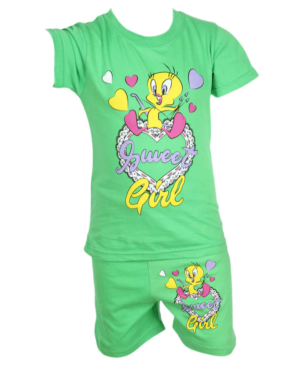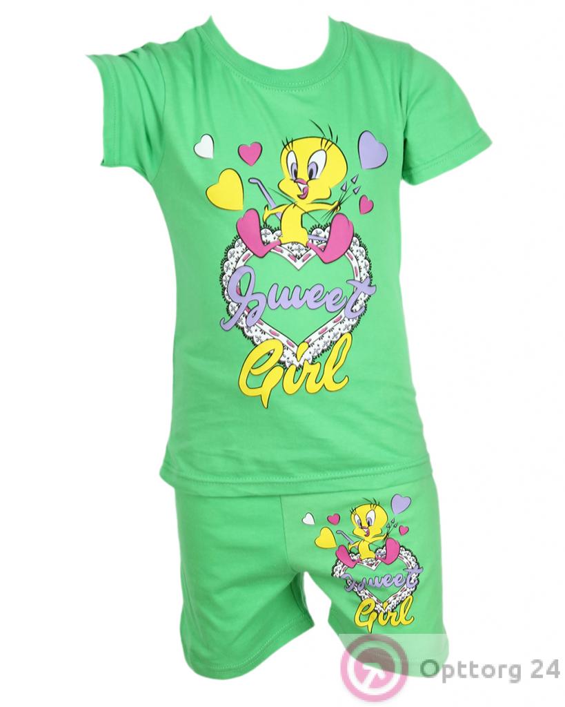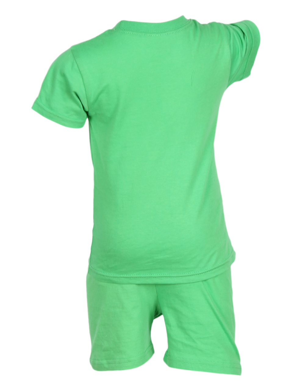 Летний детский костюм зеленого цвета. Костюм состоит из футолки прямого кроя и шорт. Мягкая натуральная ткань.