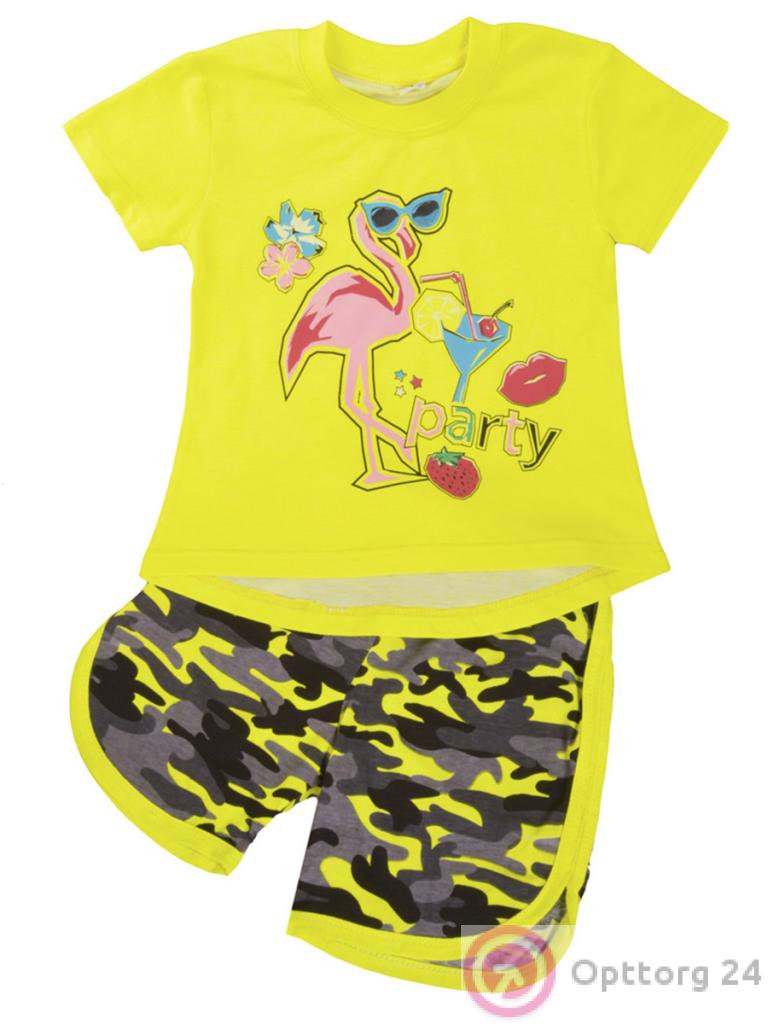 Костюм для девочки шорты +футболка желтого цвета. оптом