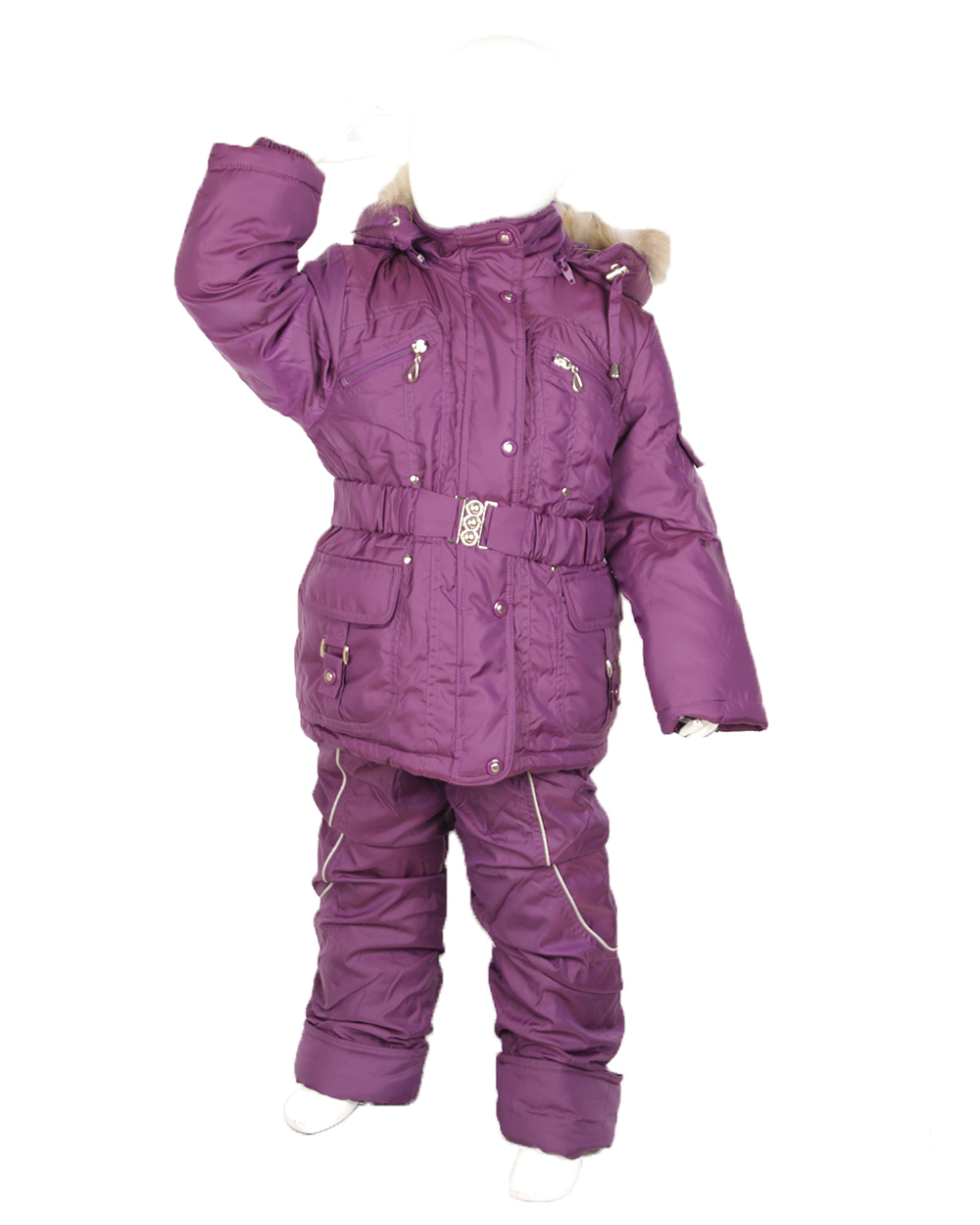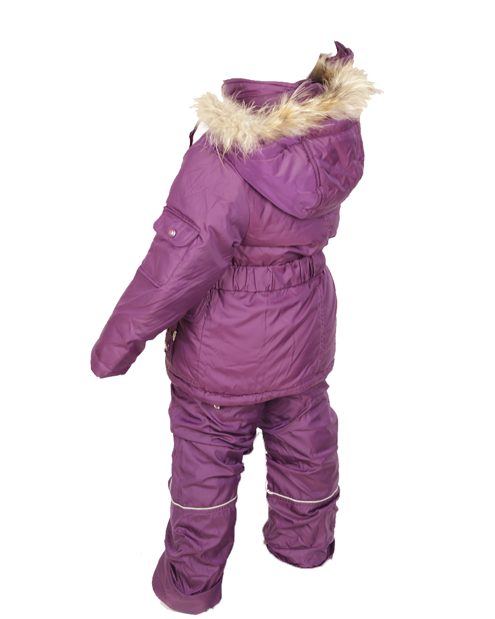 Костюм фиолетового цвета, состоящих из 3х частей: Куртка, штаны на синтепоне, и шерстеная подстёжка-жилетка. Капюшон украшен натуральным мехом песца.