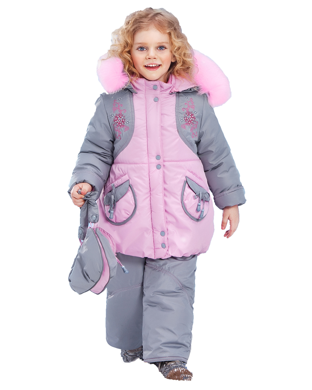 Костюм для девочки зимний серо-голубой с вышивкой оптом