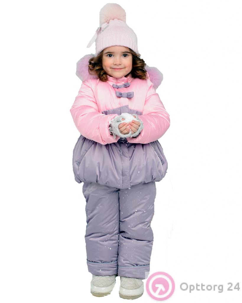 Костюм для девочки зимний серо-розовый с бантиками оптом