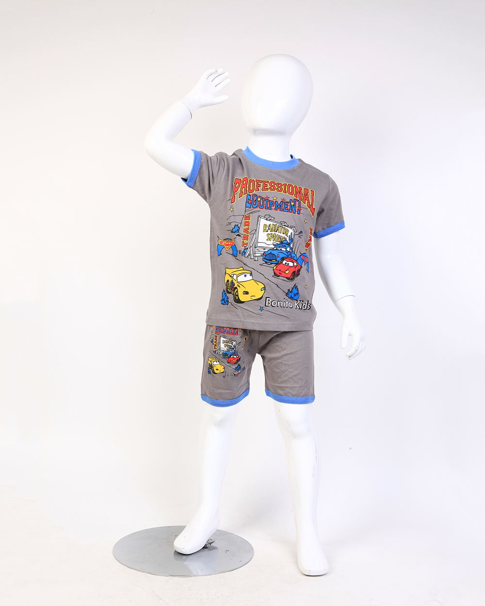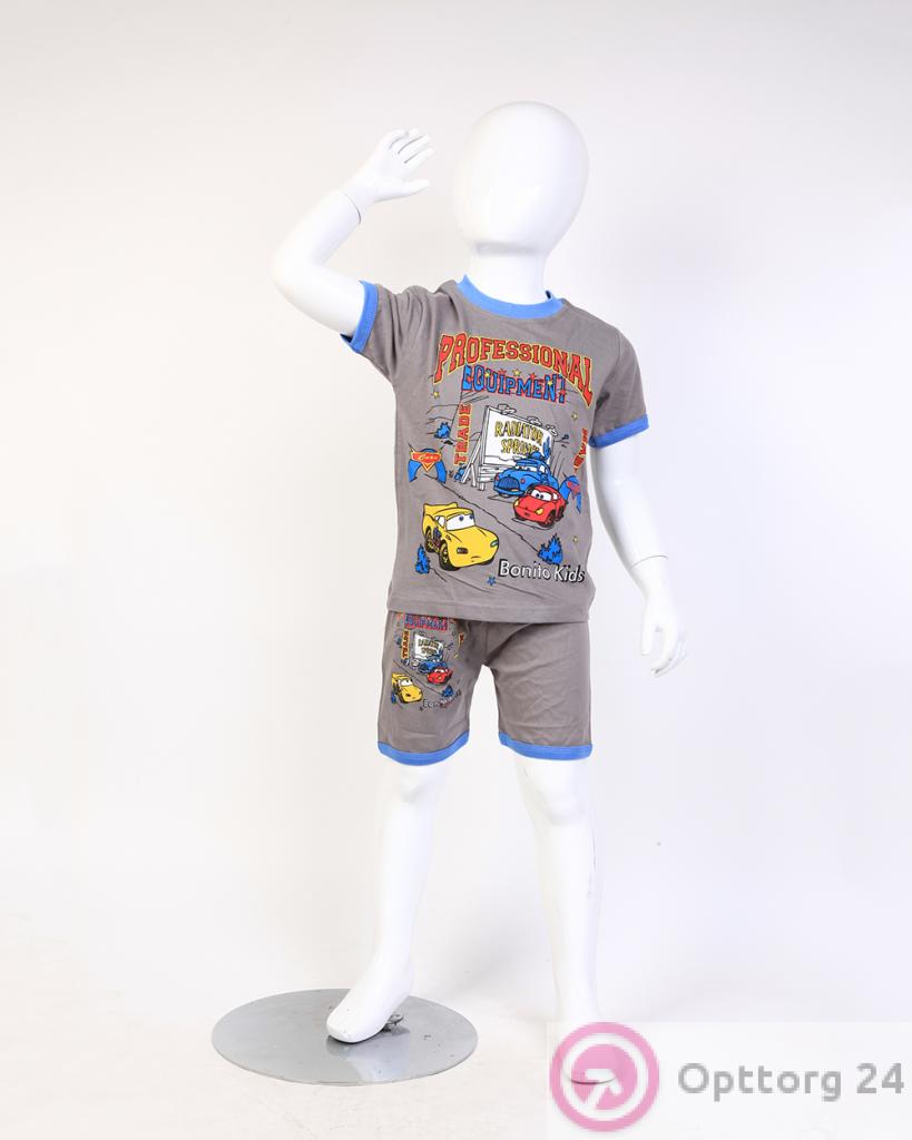 Костюм для мальчика серый с принтом "Тачки" оптом