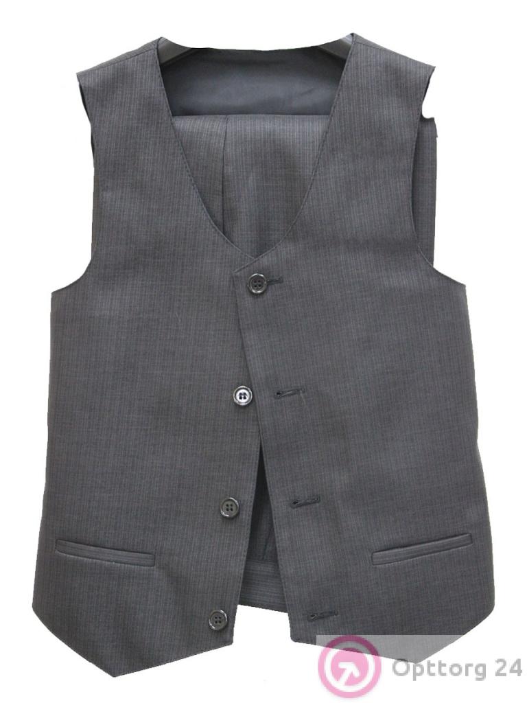Костюм для мальчика школьный серого цвета в тонкую полоску жилет и брюки оптом