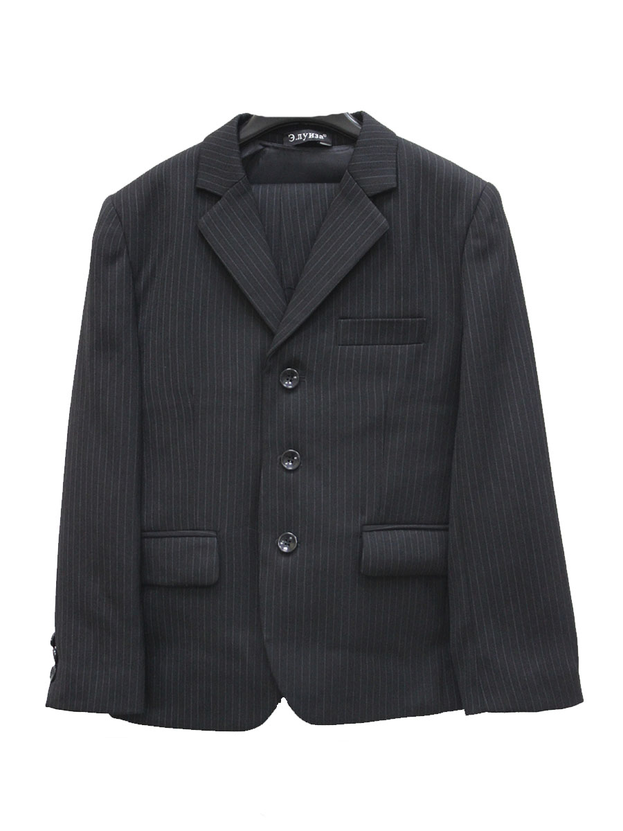 Костюм для мальчика школьный. Формат тройка. Цвет черный в тонкую белую полоску. Пиджак, жилет, брюки.