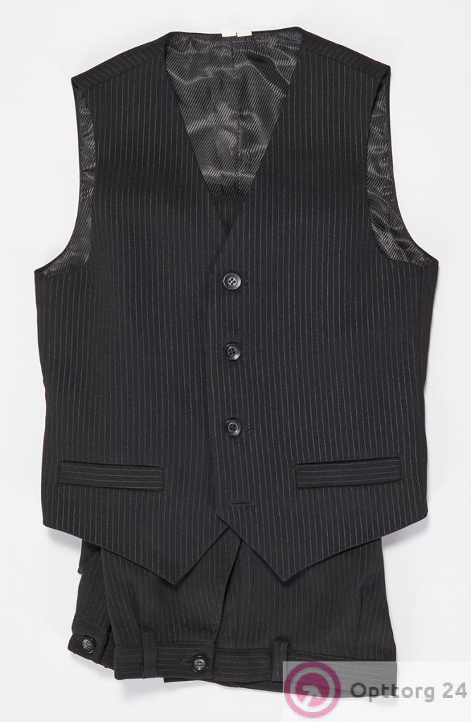 Описание: Костюм для мальчика жилет и брюки, цвет черный. Жилет приталенный, застегивается на трех пуговицах. Брюки с карманами, есть шлевки для ремня.