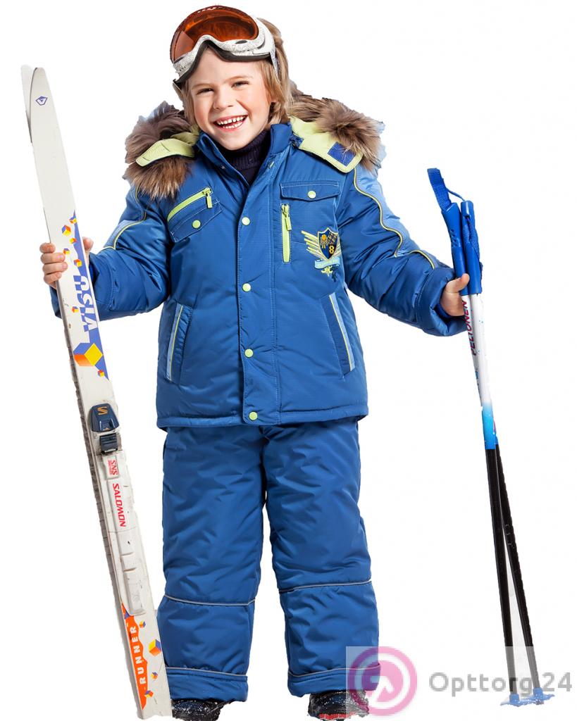 Костюм для мальчика зимний сине-голубой с меховой опушкой оптом
