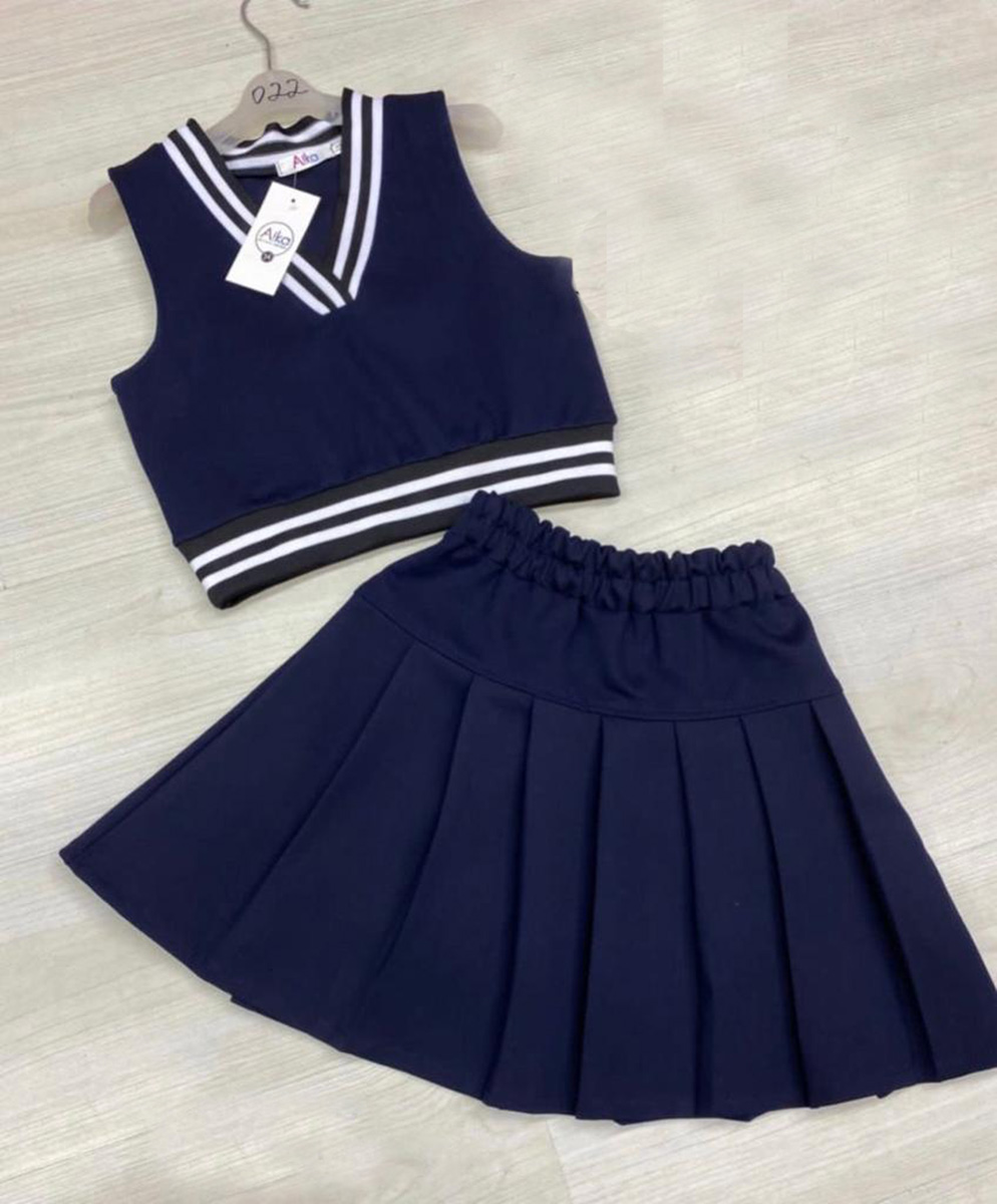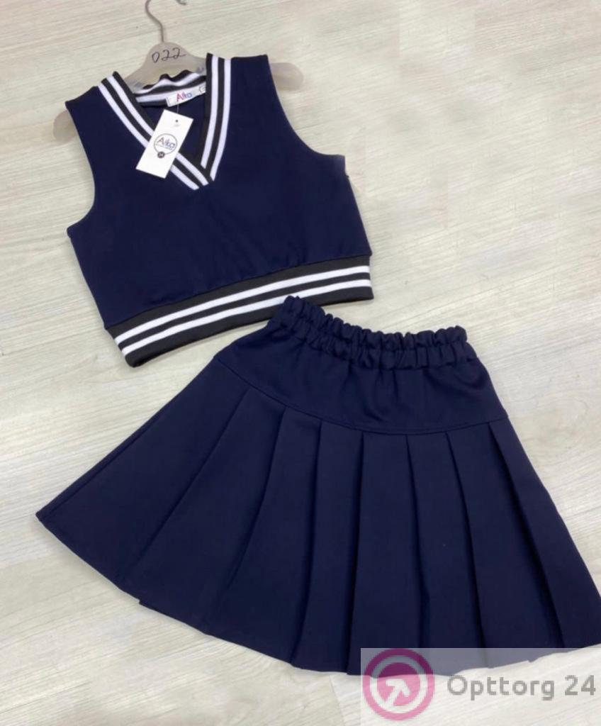 Описание: Костюм двойка для девочки (жилет и юбка) темно-синего цвета.