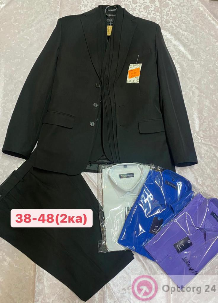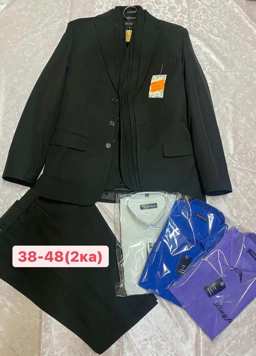 Описание: Костюм-двойка подростковый для мальчика, однотонный черного цвета, состоит из: пиджака и брюк. Пиджак застегивается на трех пуговицах. Брюки с карманами и шлевками для ремня. Брюки с регулятором размера.