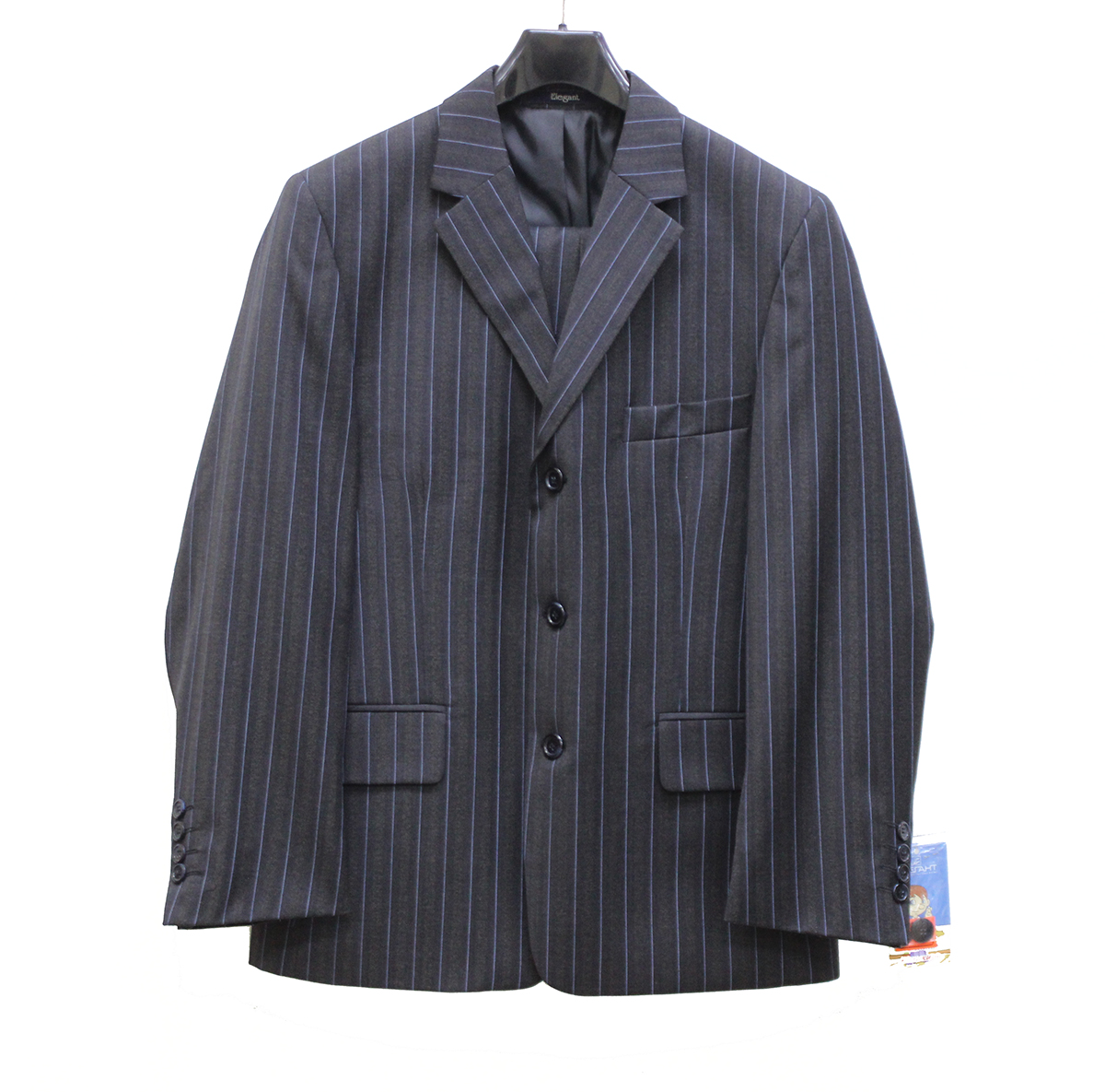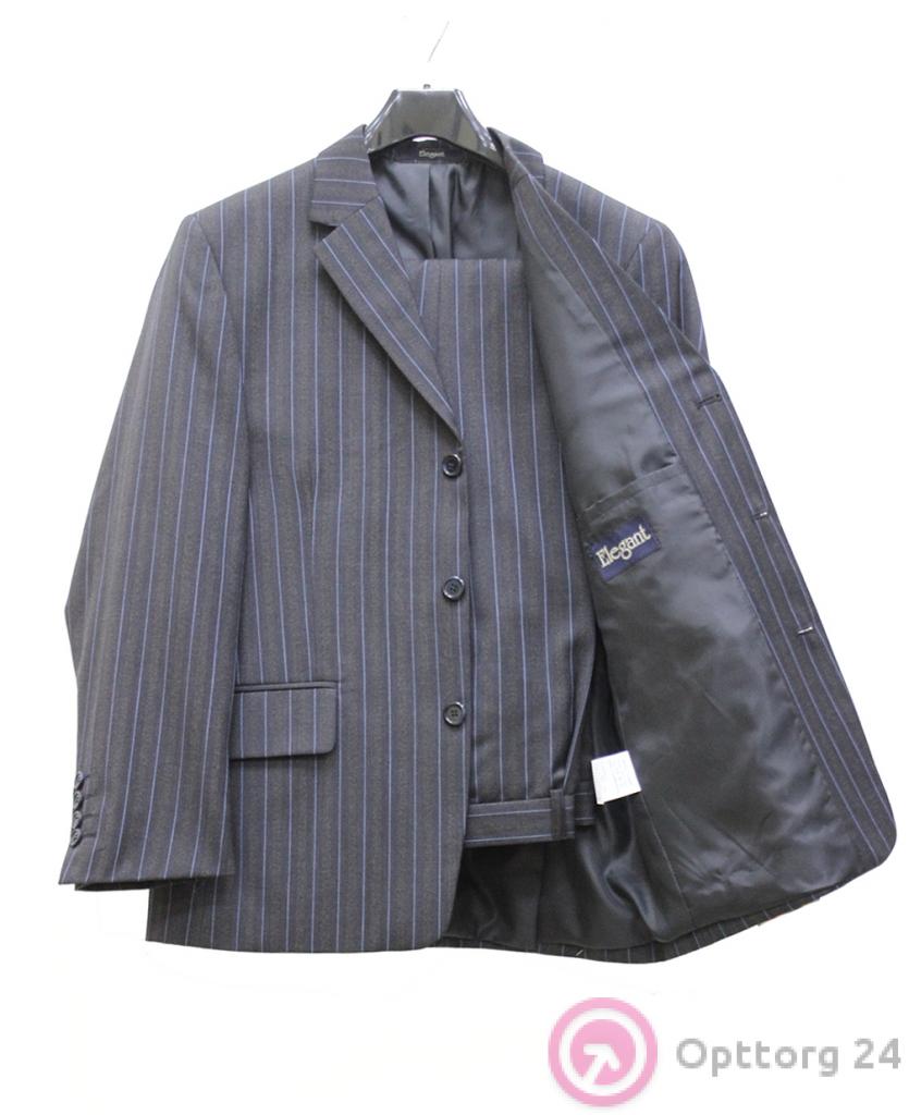 Описание: Костюм двойка подростковый для мальчика серого цвета в голубую полосочку.