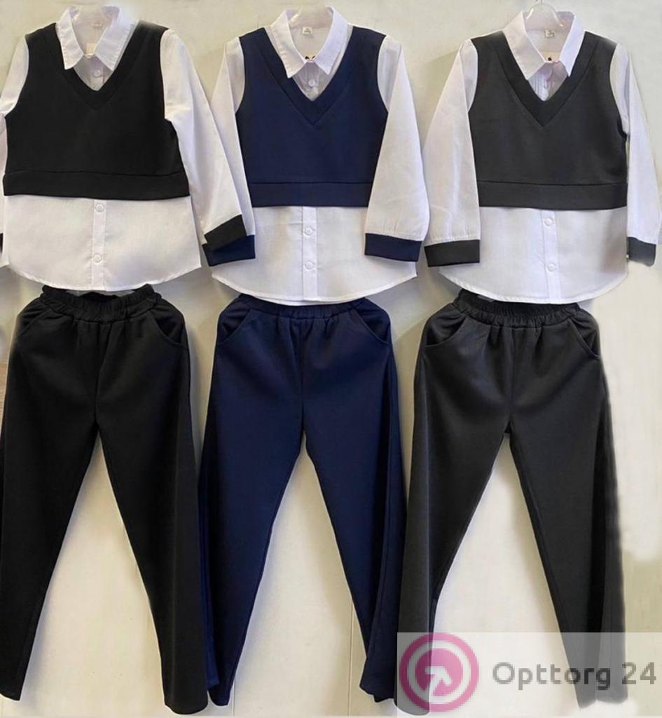 Костюм-двойка школьный для девочки блузка-обманка и брюки-кюлоты оптом