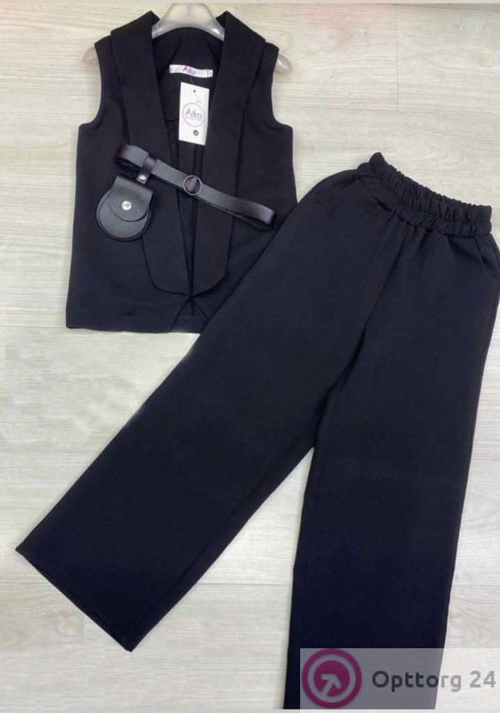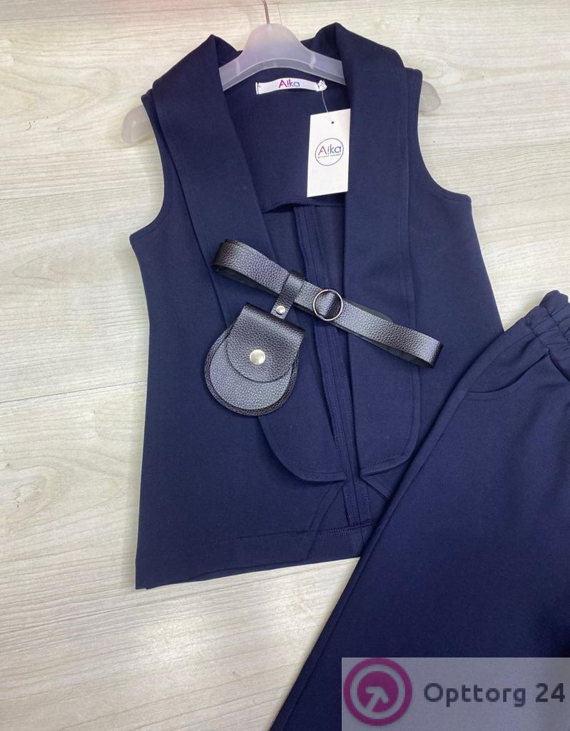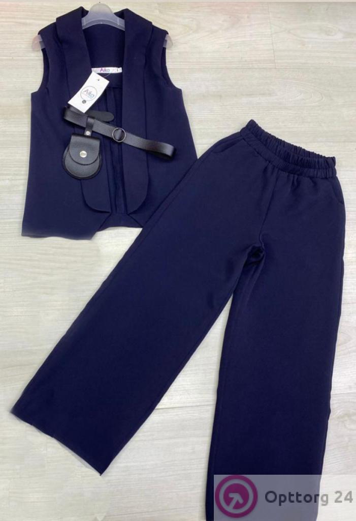 Костюм-двойка школьный для девочки жилет с ремнем и брюки оптом