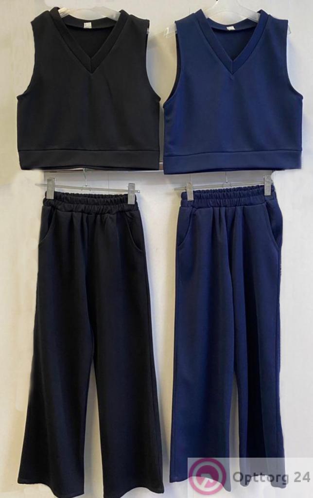 Костюм-двойка школьный подростковый для девочки жилет и брюки клеш оптом