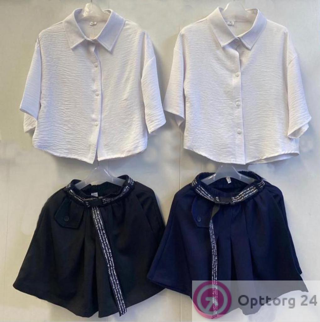 Костюм подростковый школьный для девочки блузка и юбка-шорты оптом