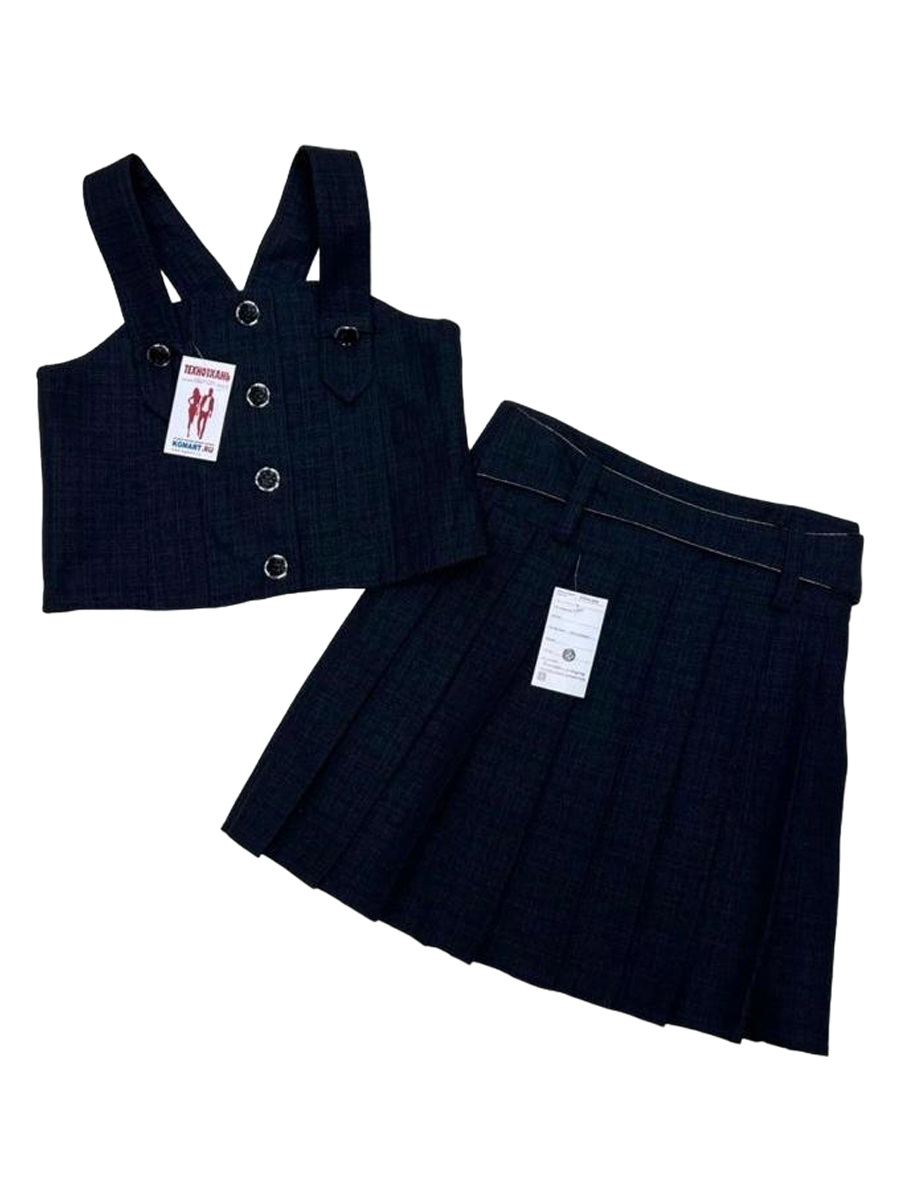 Красивый и стильный школьный костюм для девочек состоит из жилета и юбки, выполненных из высококачественных материалов. Жилет имеет стильный дизайн и отлично сидит на детской фигуре. Юбка плиссированная, с широким поясом. Костюм предназначен для школьных занятий и мероприятий.