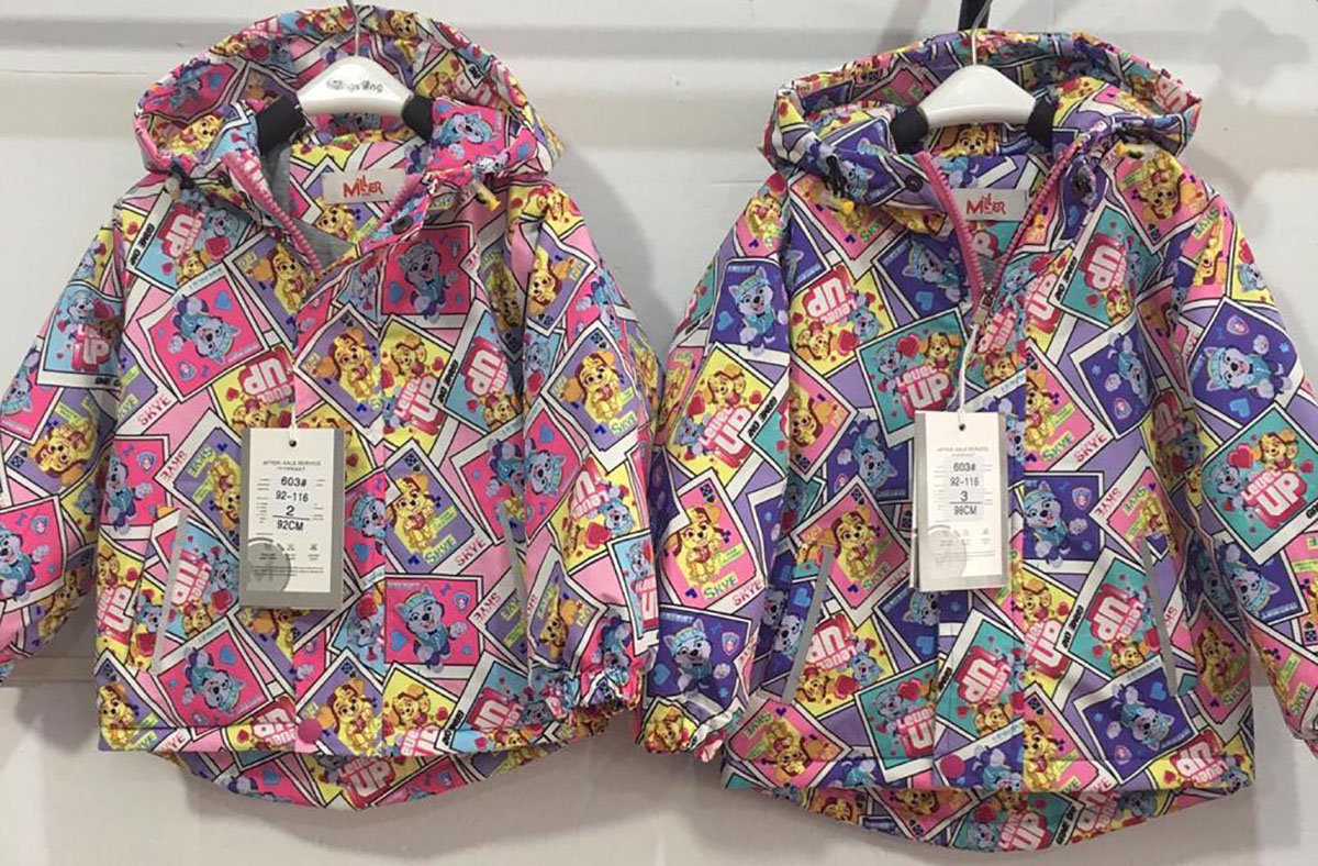 Описание: Куртка демисезонная детская для девочки с принтом собачек.