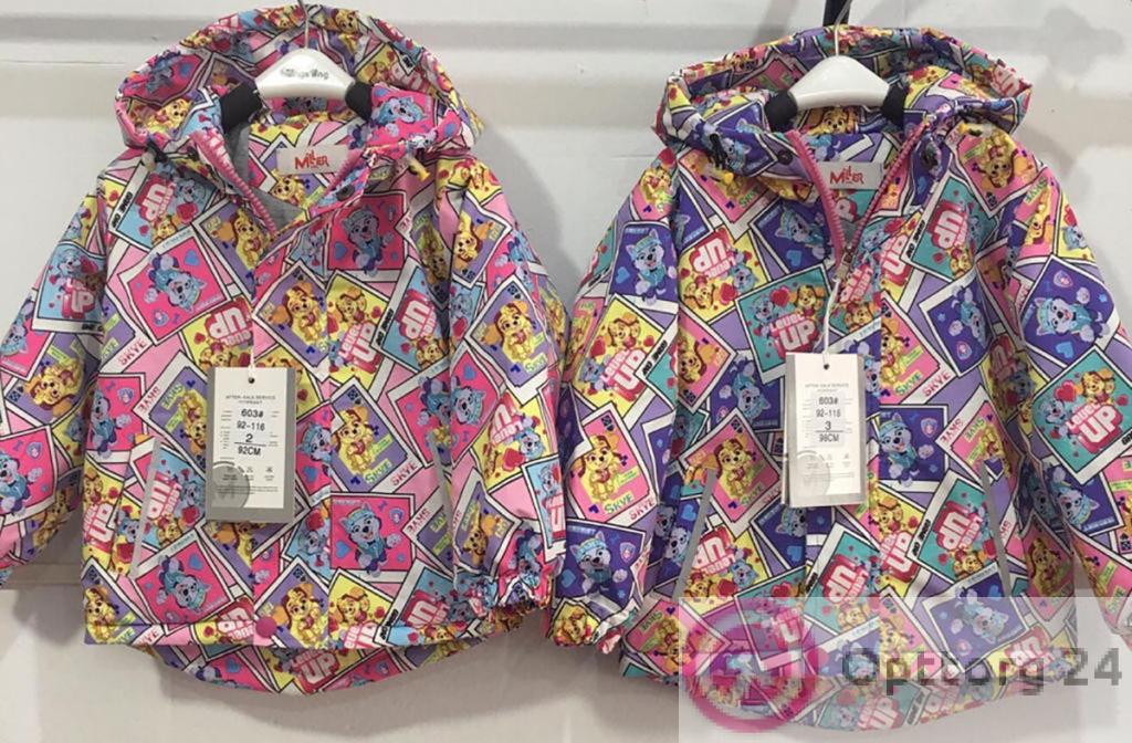 Куртка демисезонная детская для девочки с принтом собачек оптом