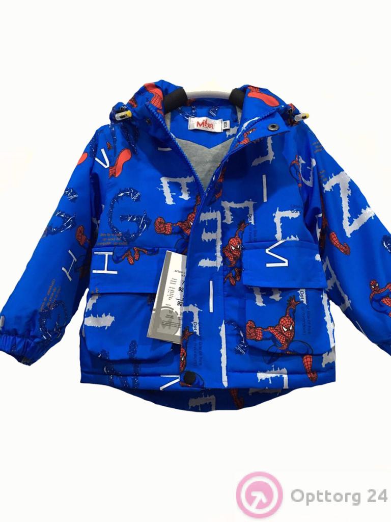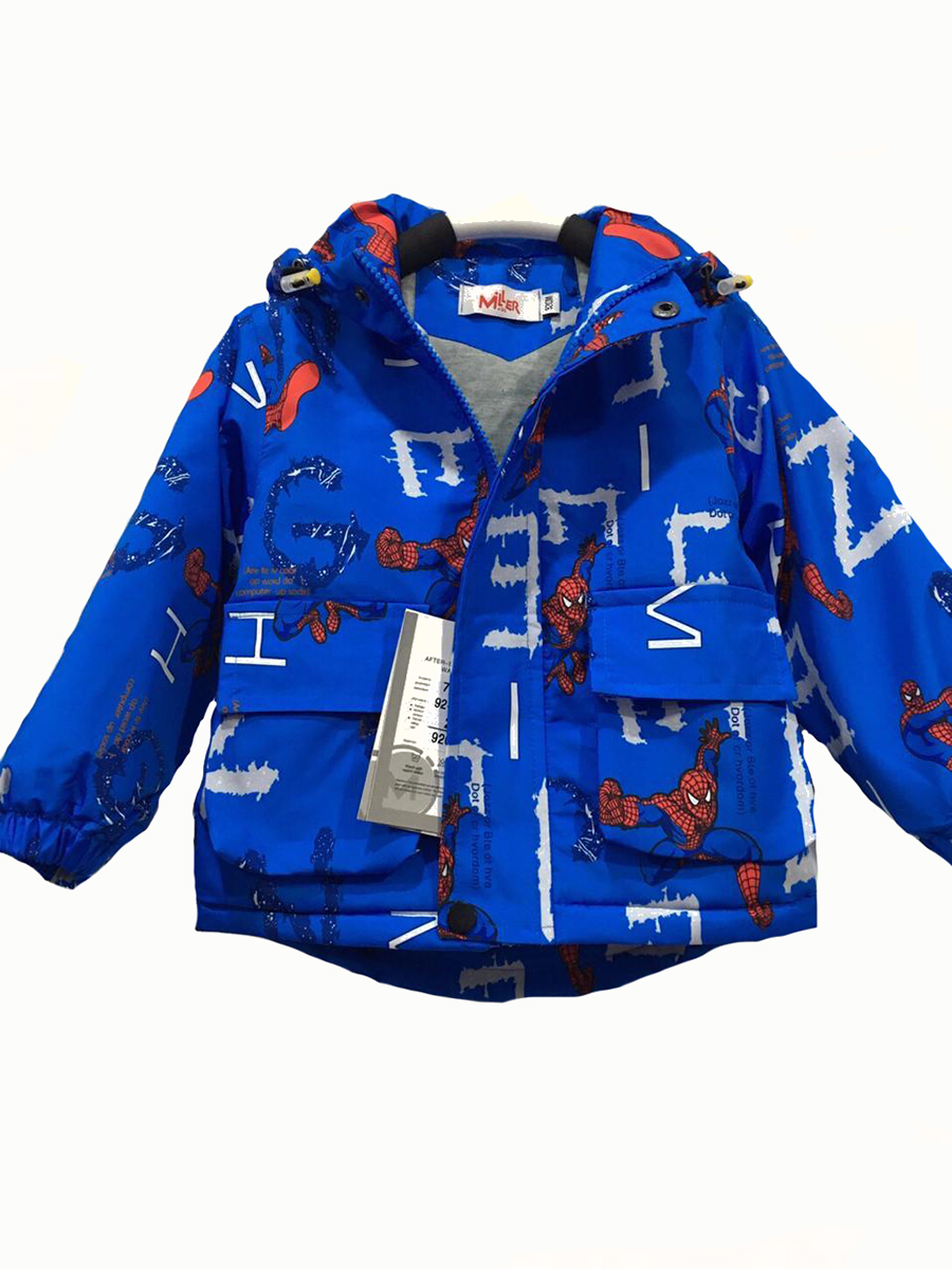 Описание: Куртка демисезонная детская для мальчика, синего цвета, с принтом Человека-паука.