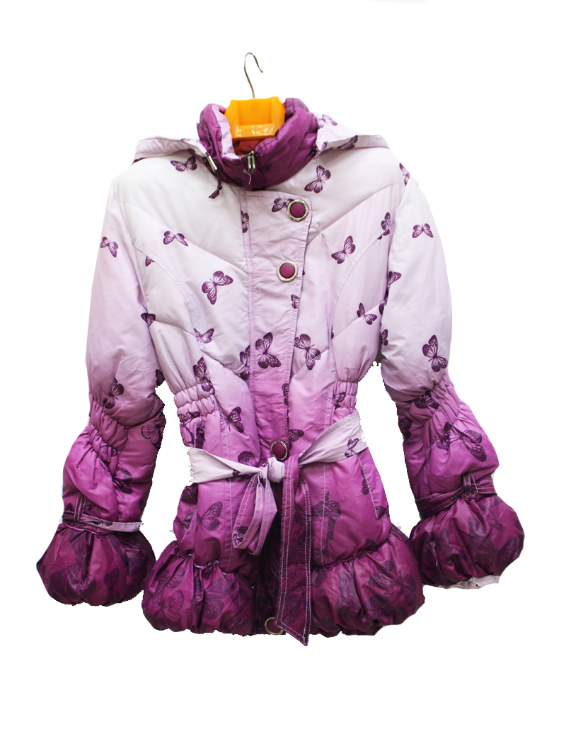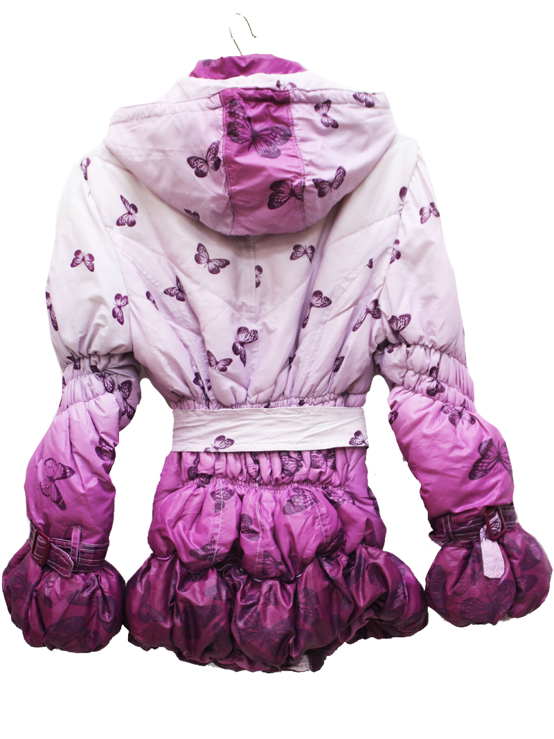 Описание: куртка демисезонная для девочки бело-фиолетовая с принтом бабочек. Зауженная модель.