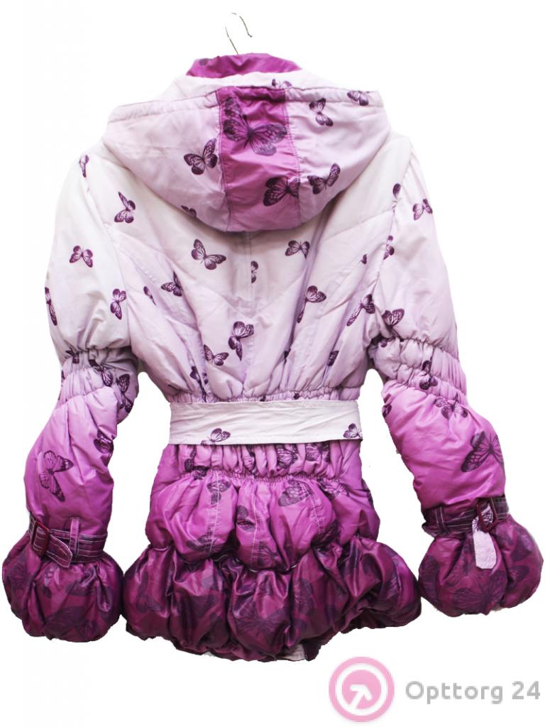 Куртка демисезонная для девочки бело-фиолетовая с принтом бабочек оптом