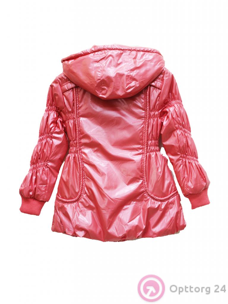 Куртка демисезонная для девочки блестящая кораллового цвета оптом